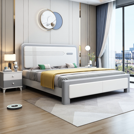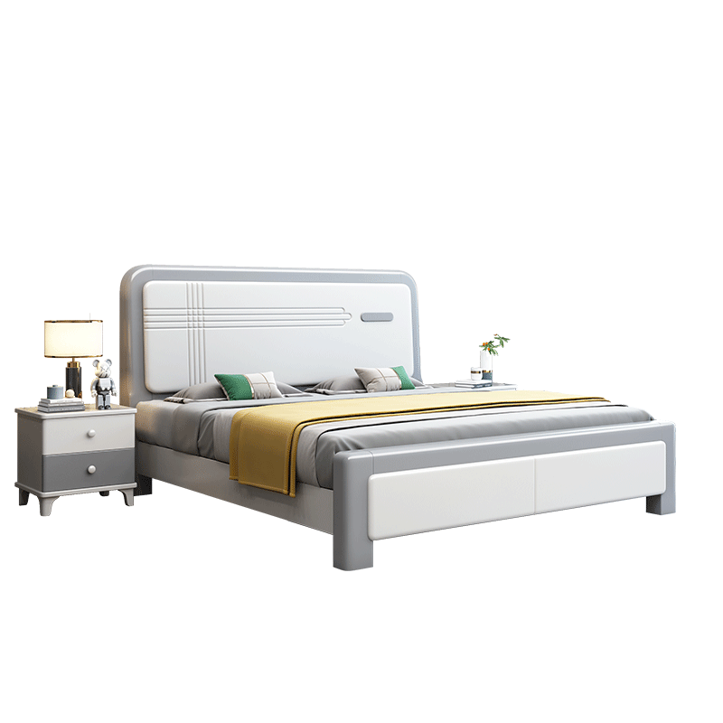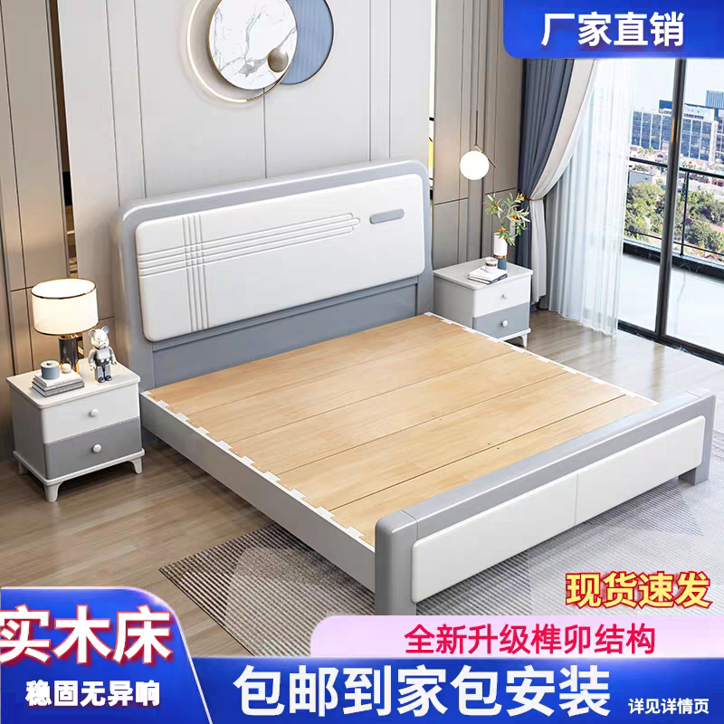 全友家居北欧经济型实木床白色现代简约1.8米主卧双人床1.5轻奢榫