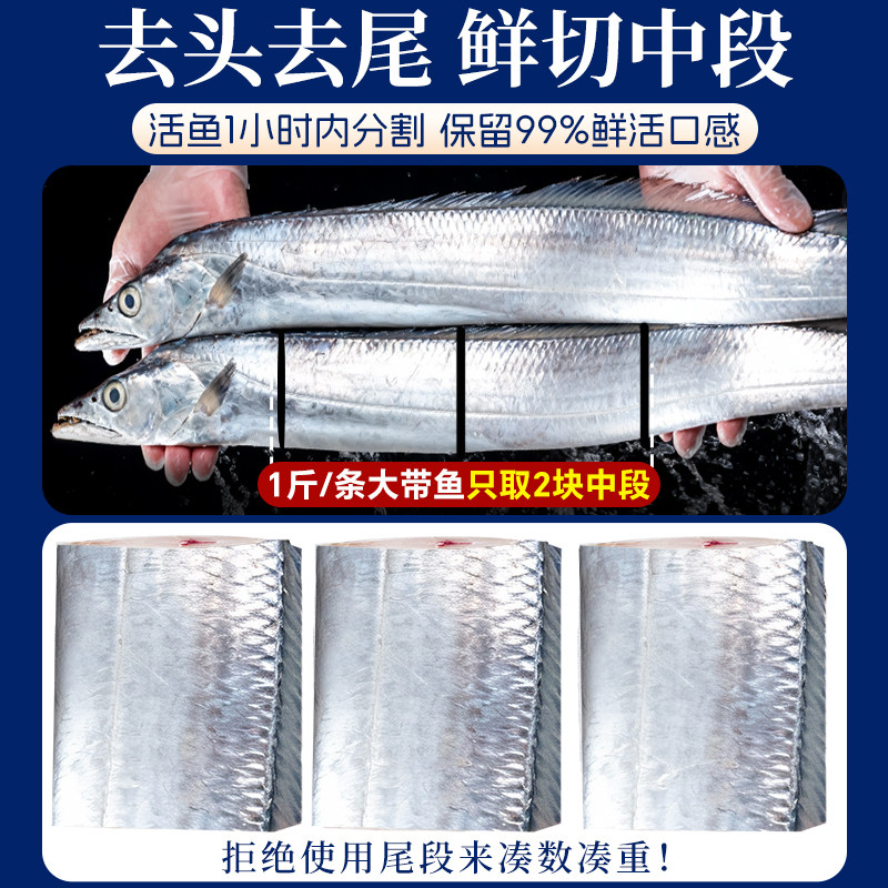 带鱼段新鲜冷冻中段刀鱼特级大无冰东海小眼海鱼鲜活海鲜整箱10斤