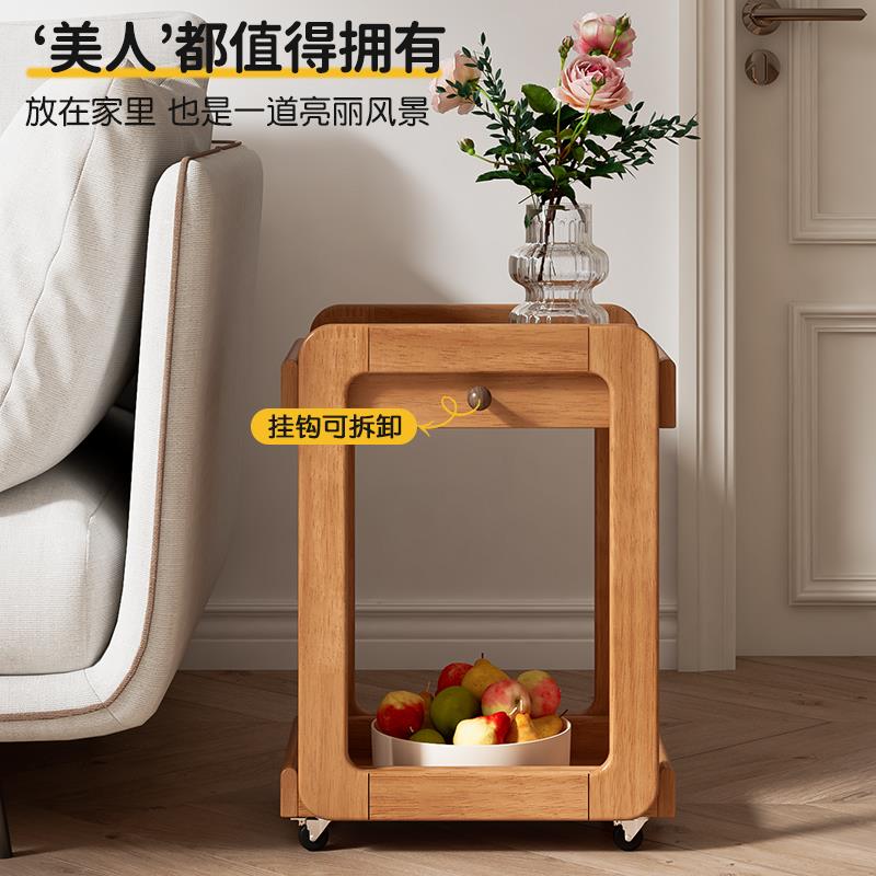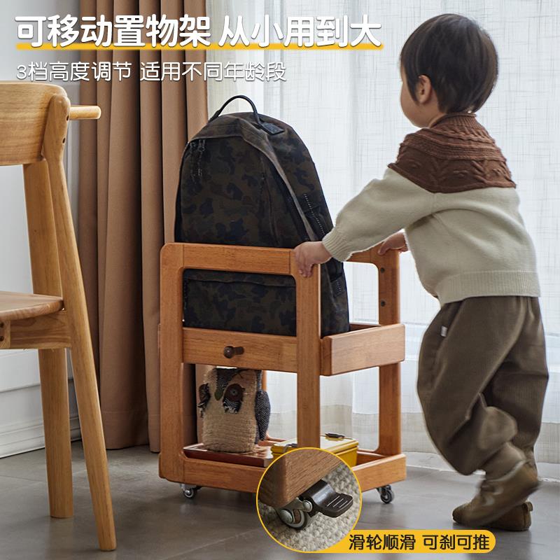 蒙氏儿童实木书架书包置物架实木可移动推车储物架书包架放置神器