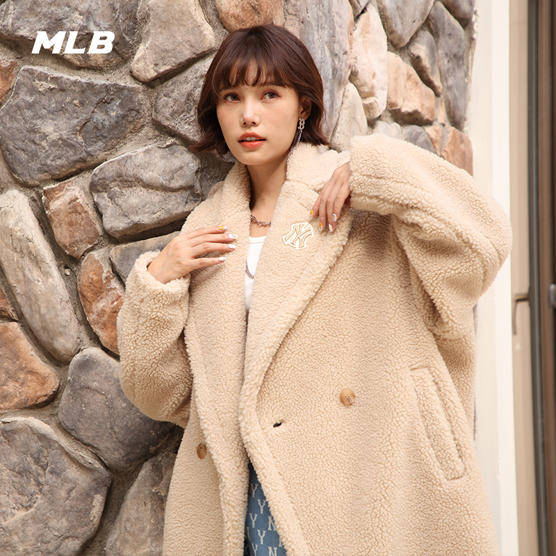 MLB官方 女士长款休闲仿羊羔绒外套休闲时尚冬季FDEC3