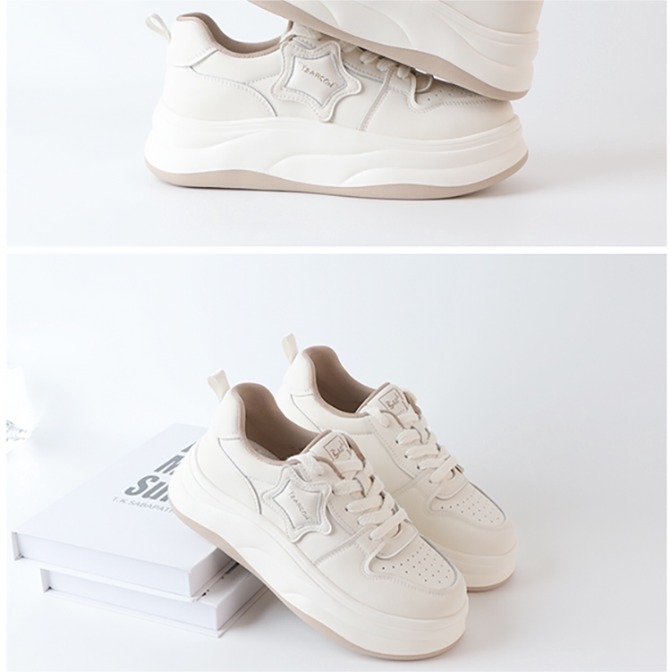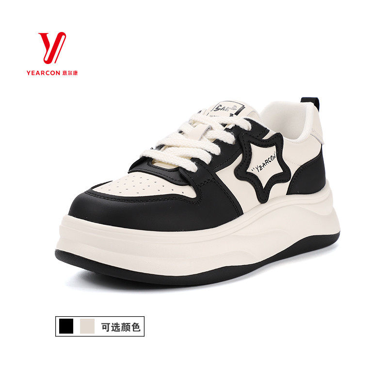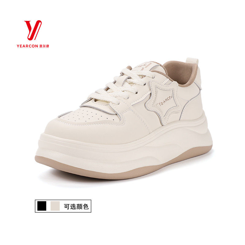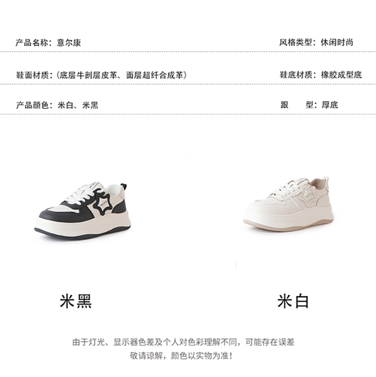 意尔康商场同款女式2024新款板鞋真皮厚底小白鞋熊猫571ad05515y