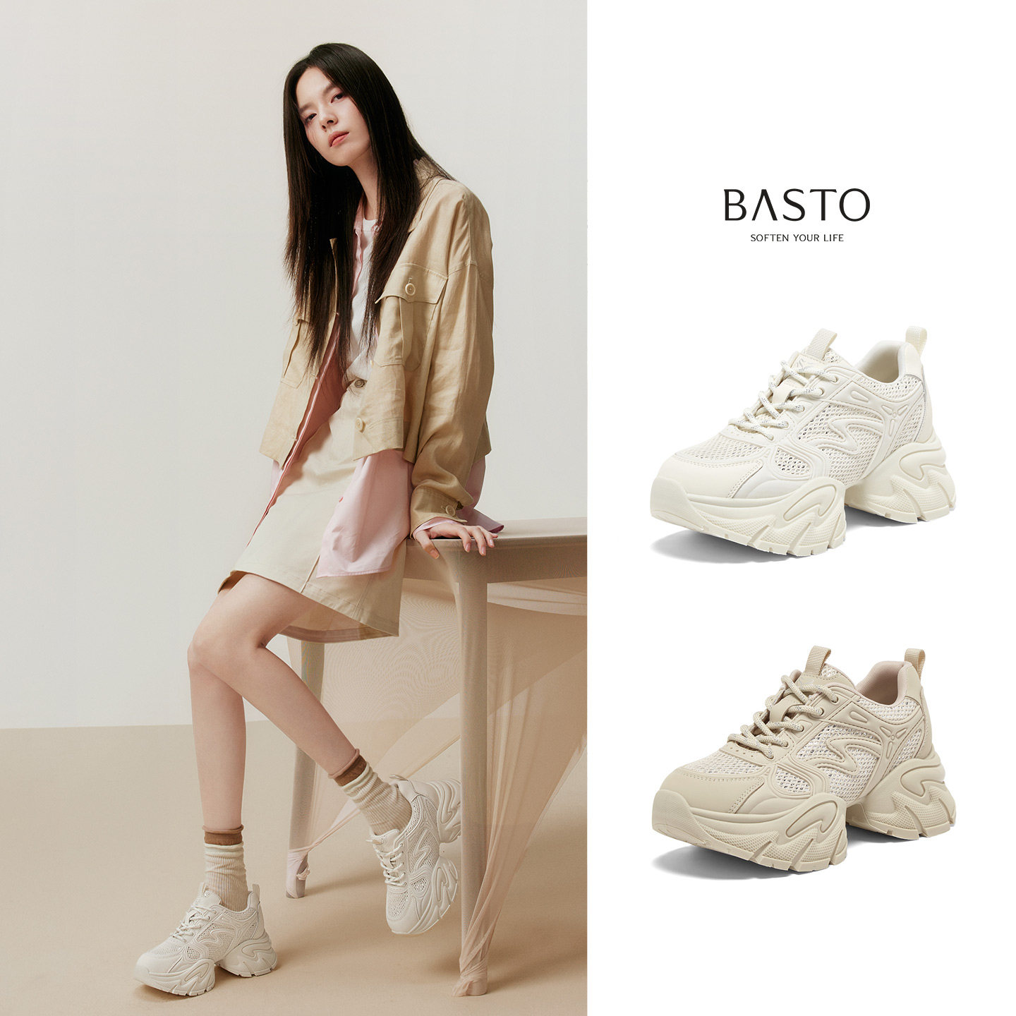 百思图2025秋季新款商场同款老爹鞋时尚厚底增高女休闲写G8885CM5