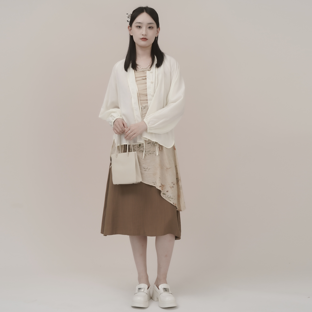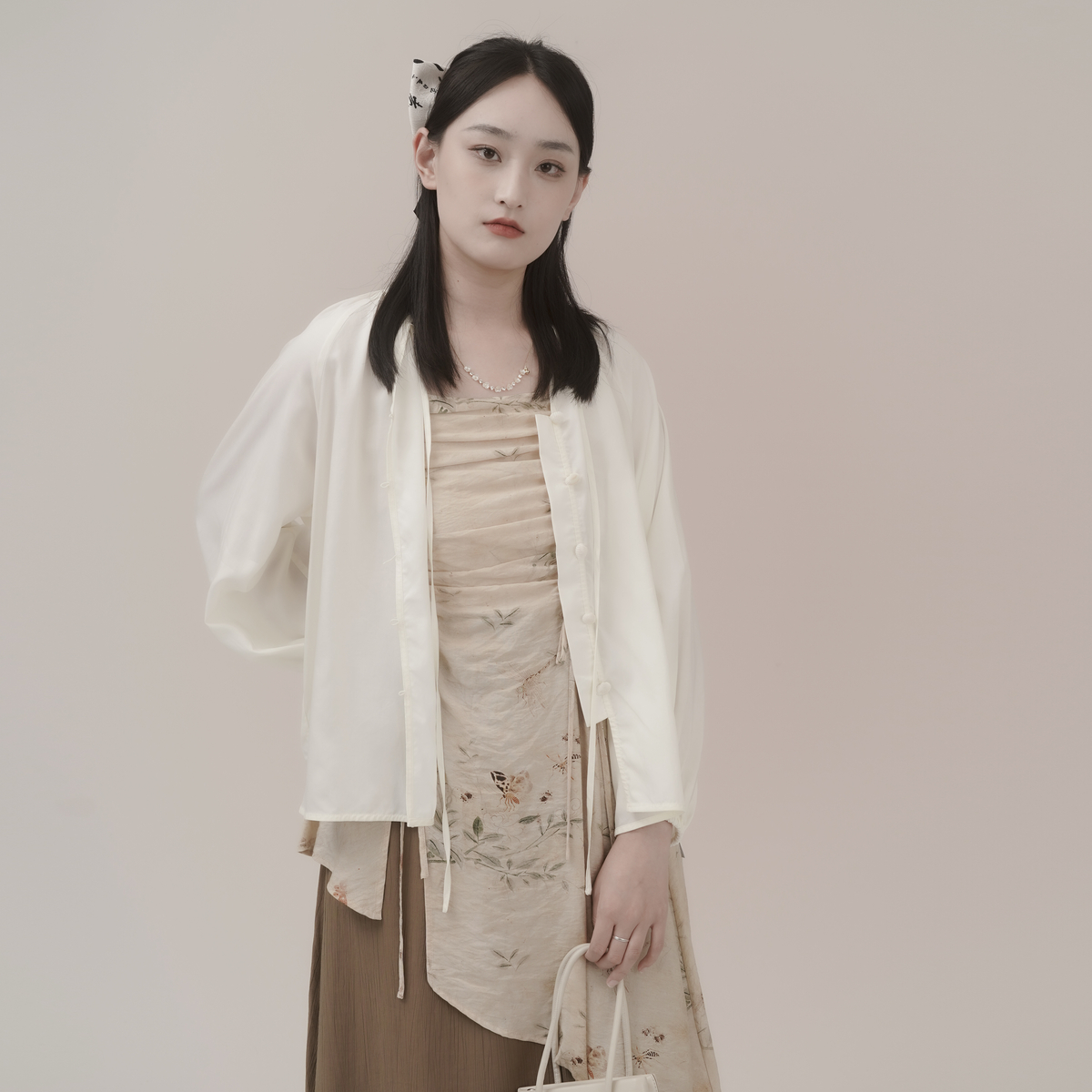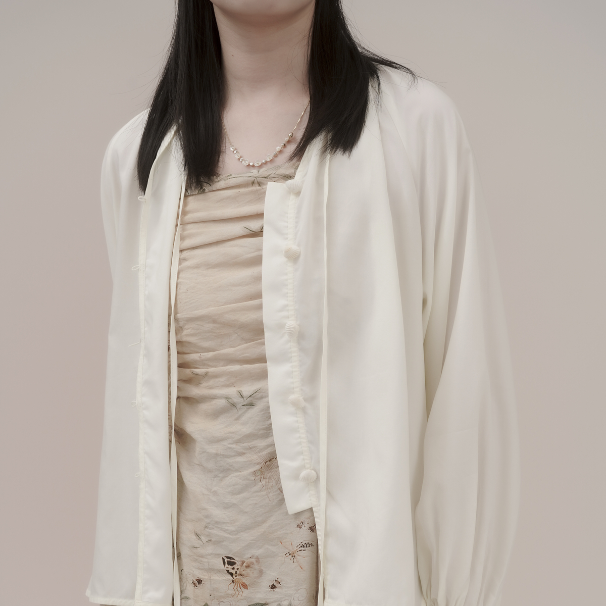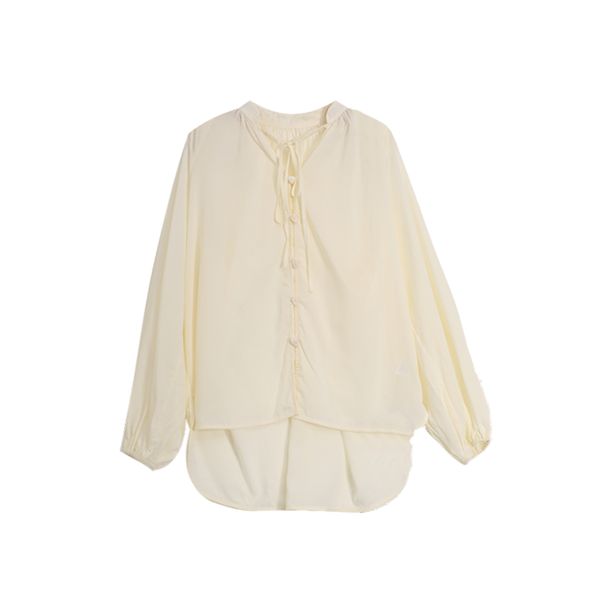 西町村屋衬衫女装秋季法式浪漫慵懒贝壳扣立领长袖小衫AC8111002