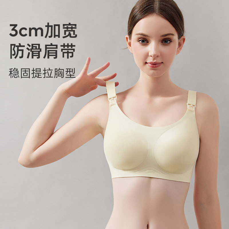 婧麒大码大胸无痕哺乳内衣聚拢防下垂怀孕期产后喂奶专用孕妇文胸