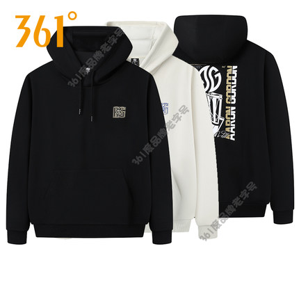 361度男装连帽卫衣2025秋季新品棉质套头衫时尚印花休闲运动上衣