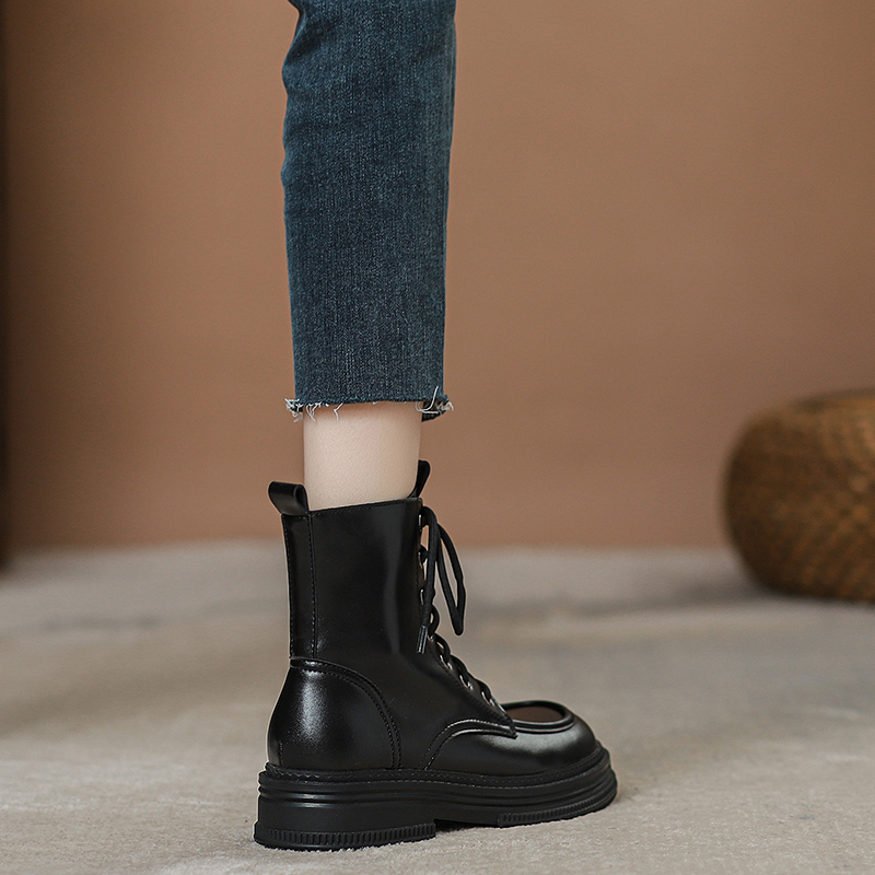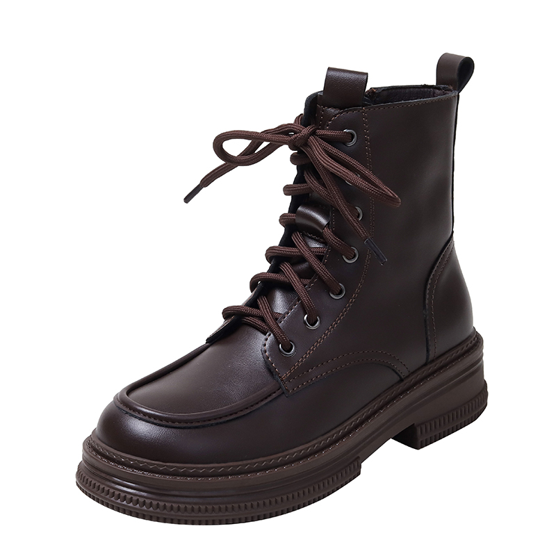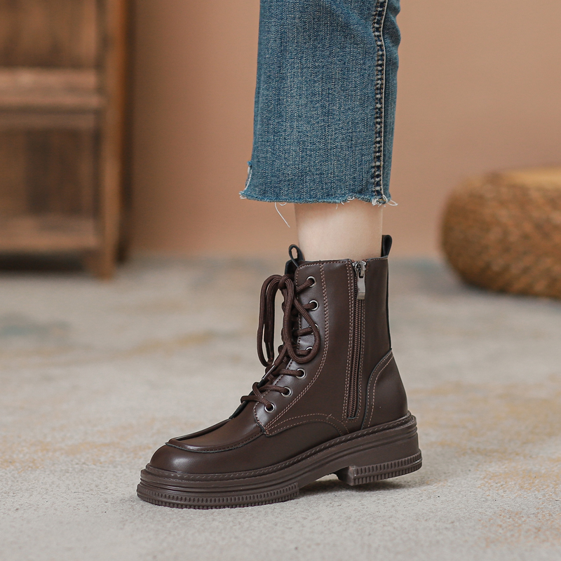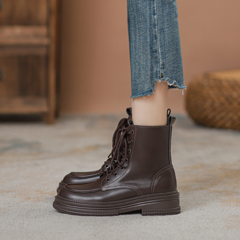 真皮时尚马丁靴女2025秋冬季新款单靴英伦风加绒厚底棕色机车短靴