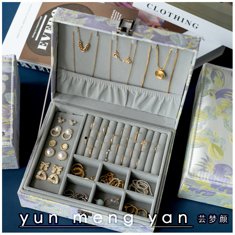 芸梦颜欧式大容量首饰盒高档奢华饰品耳钉结婚礼品珠宝提花收纳盒