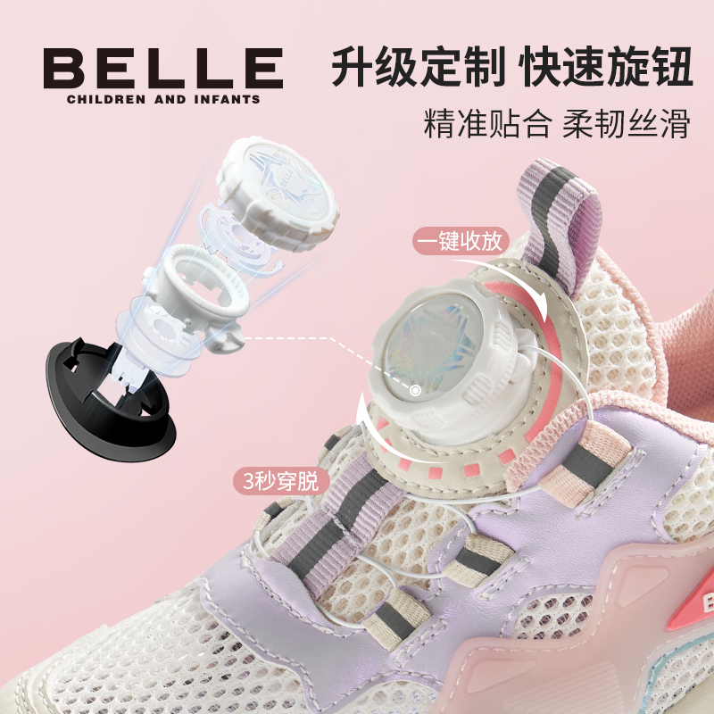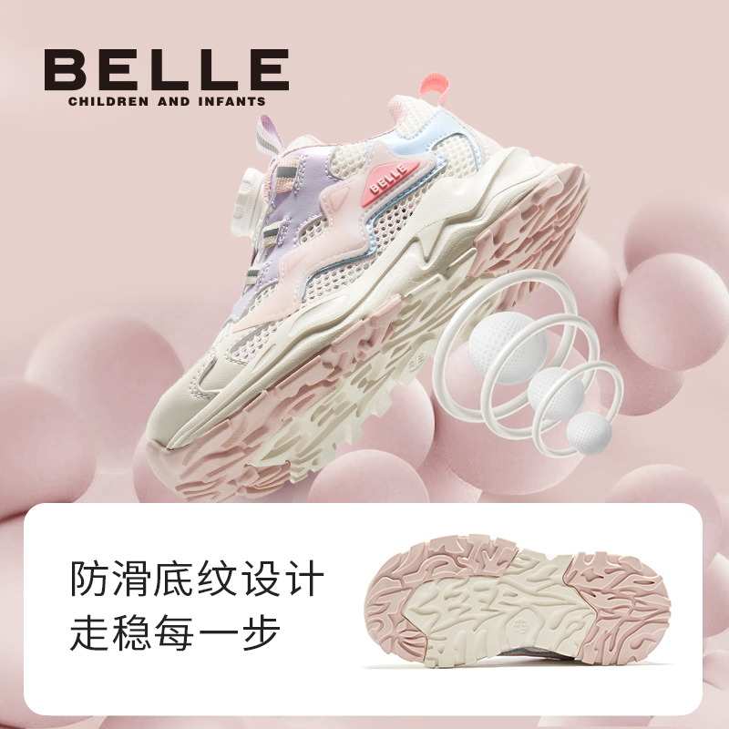 百丽童鞋儿童凉鞋女童运动鞋网面透气女孩跑步暴走沙滩休闲老爹鞋