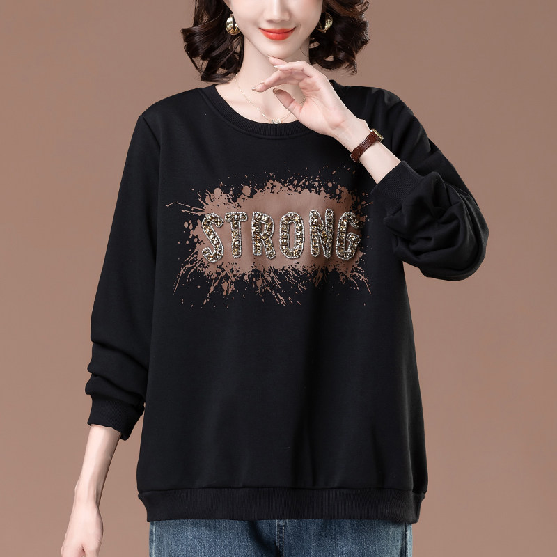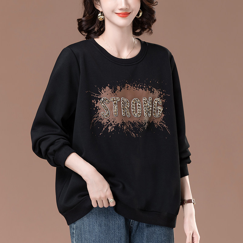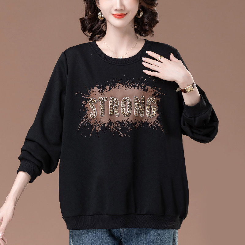 加绒卫衣女秋冬加肥加大码女装宽松中年妈妈遮肚保暖加厚圆领上衣