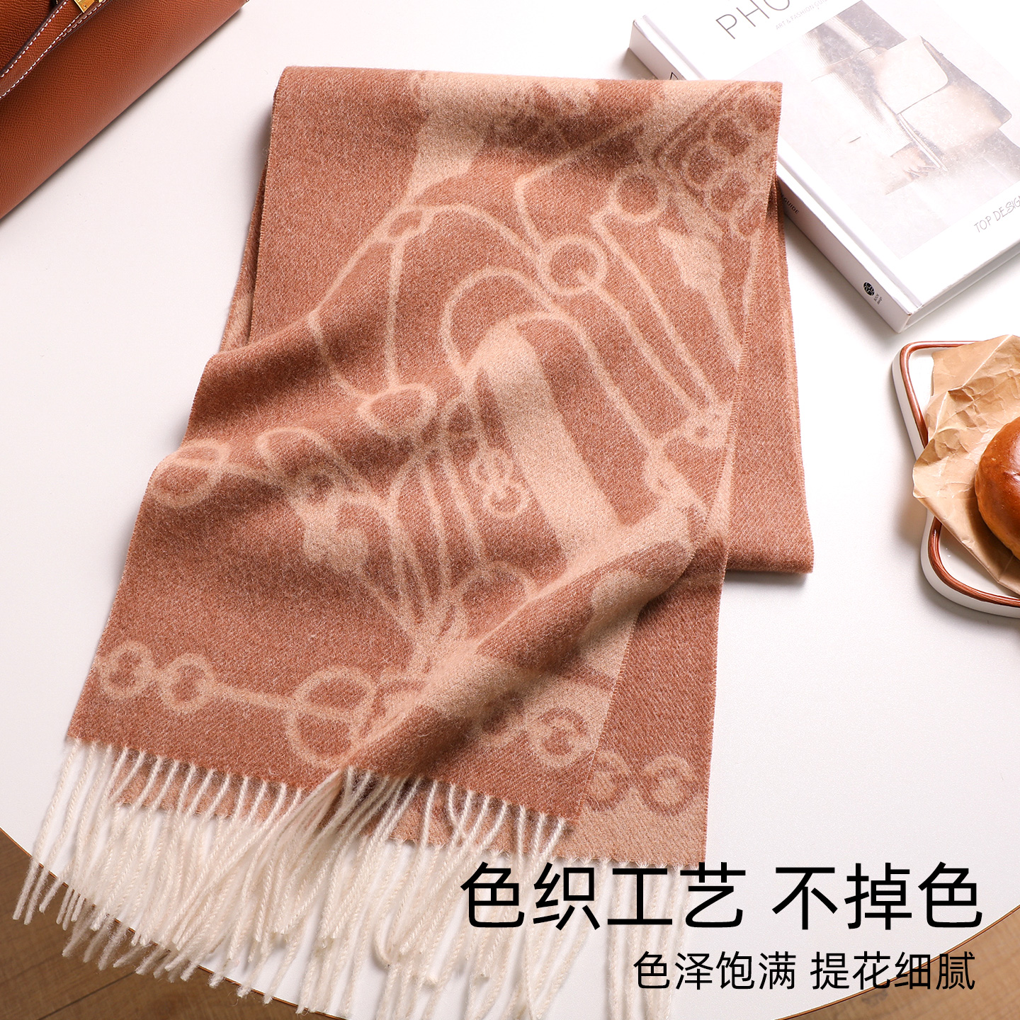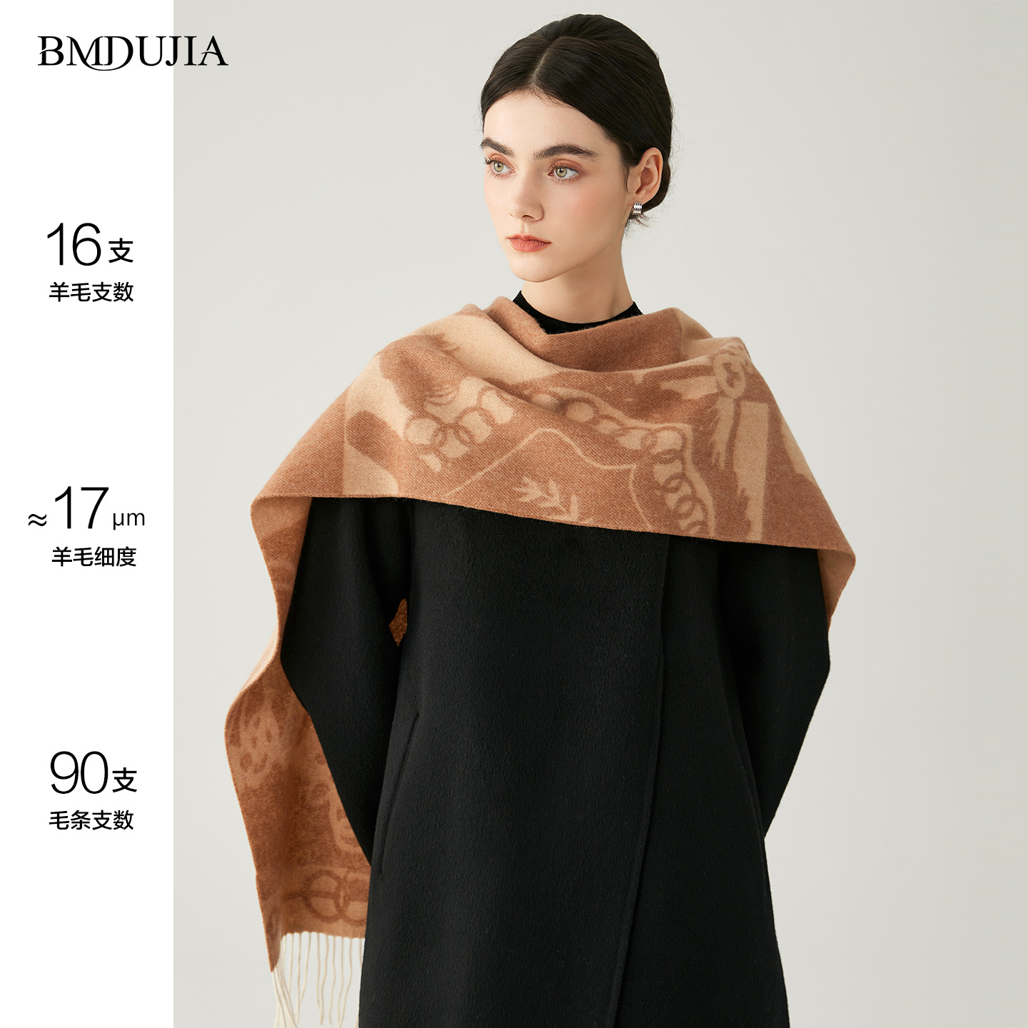 百蜜 100%羊毛围巾冬季女2025新款几何棕色高级感围脖美拉德披肩