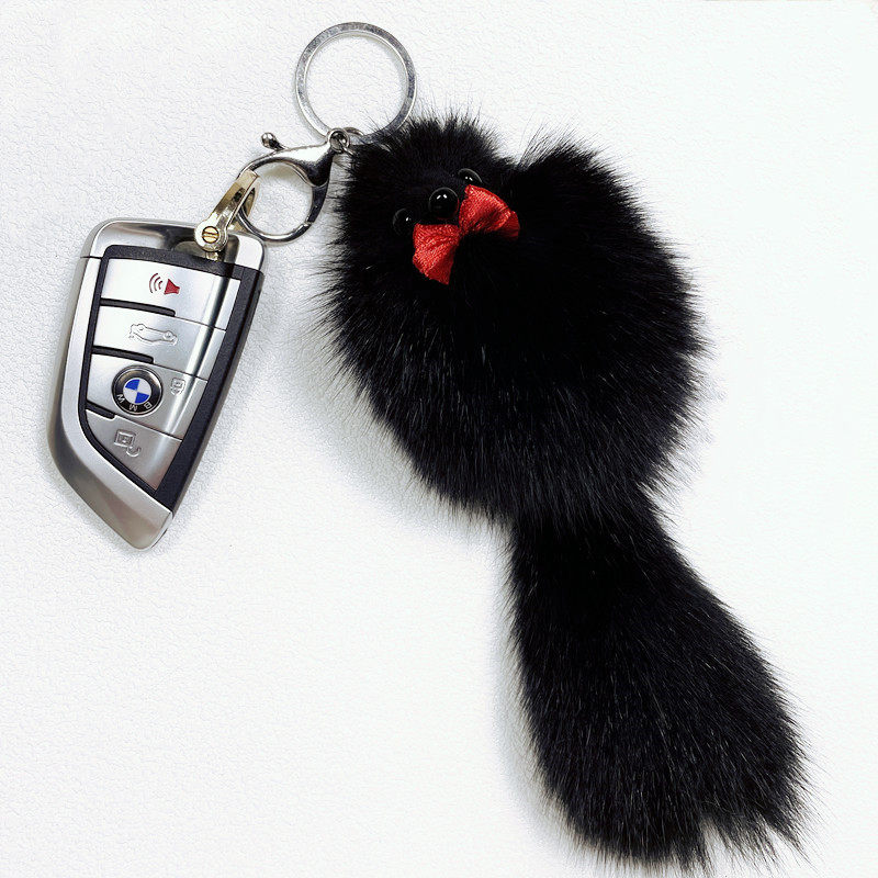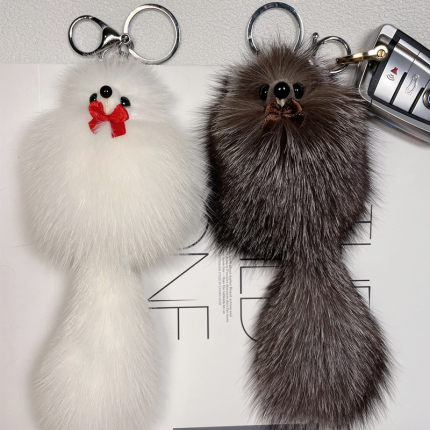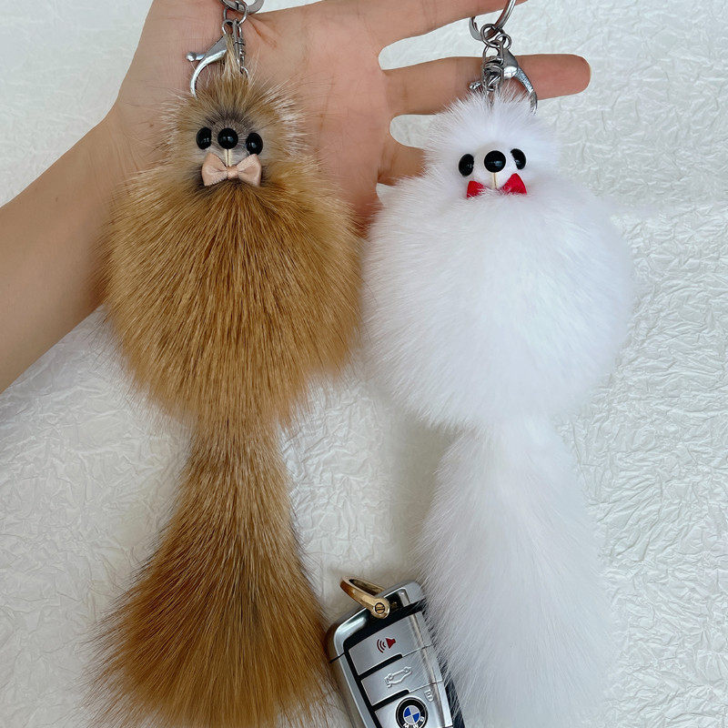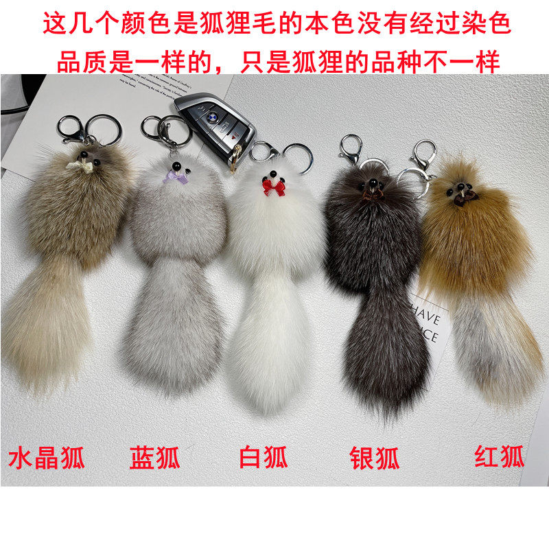 ins韩国可爱小狐狸毛球女包包小挂件真毛毛绒汽车钥匙扣背包配件
