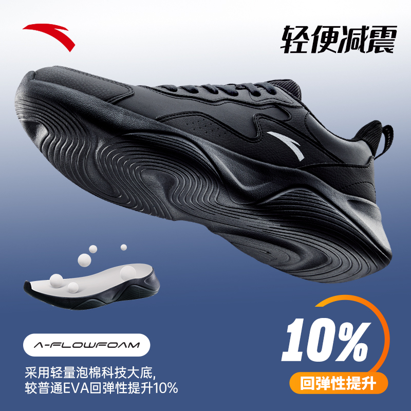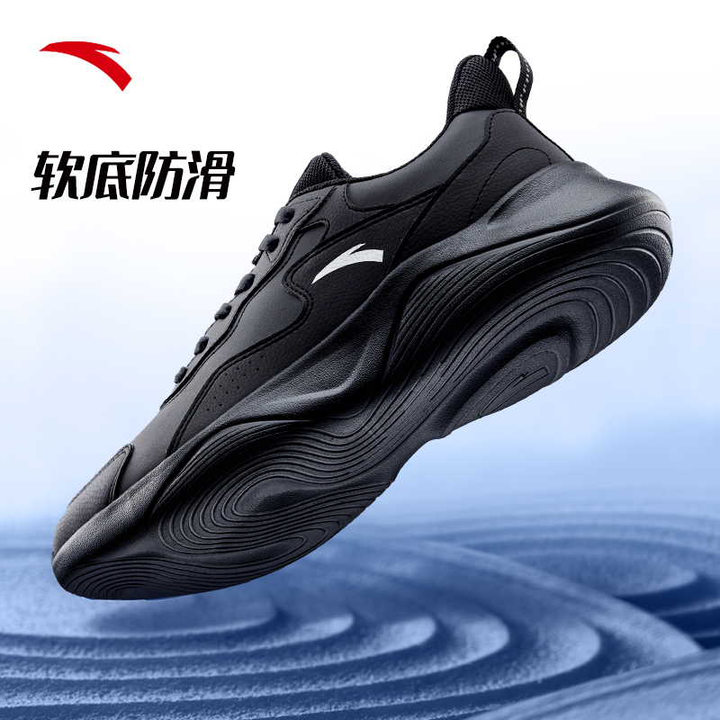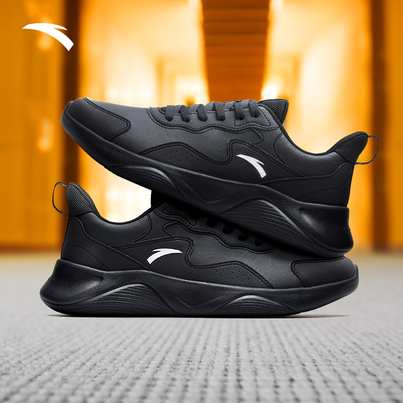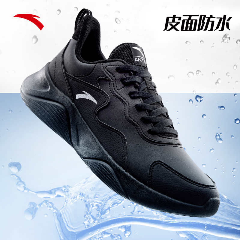 安踏男鞋跑步鞋2025冬季新款皮面防水旅游鞋男士轻质黑色运动鞋