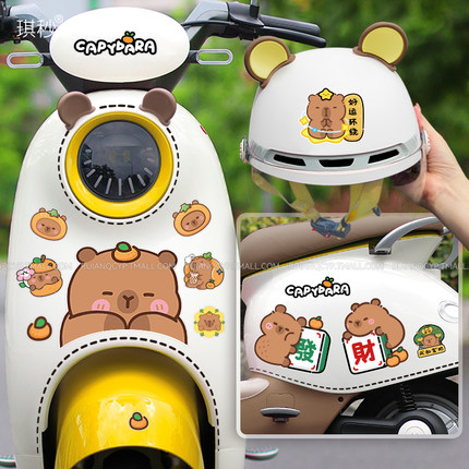 卡皮巴拉电动车贴纸水豚可爱卡通汽车电瓶车头盔车身刮划痕装饰贴