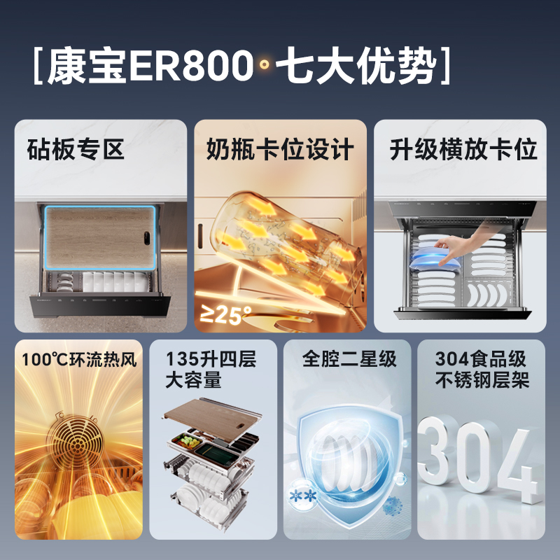 康宝御风嵌入式消毒柜家用磐石大容量高温四层热风母婴新款ER800