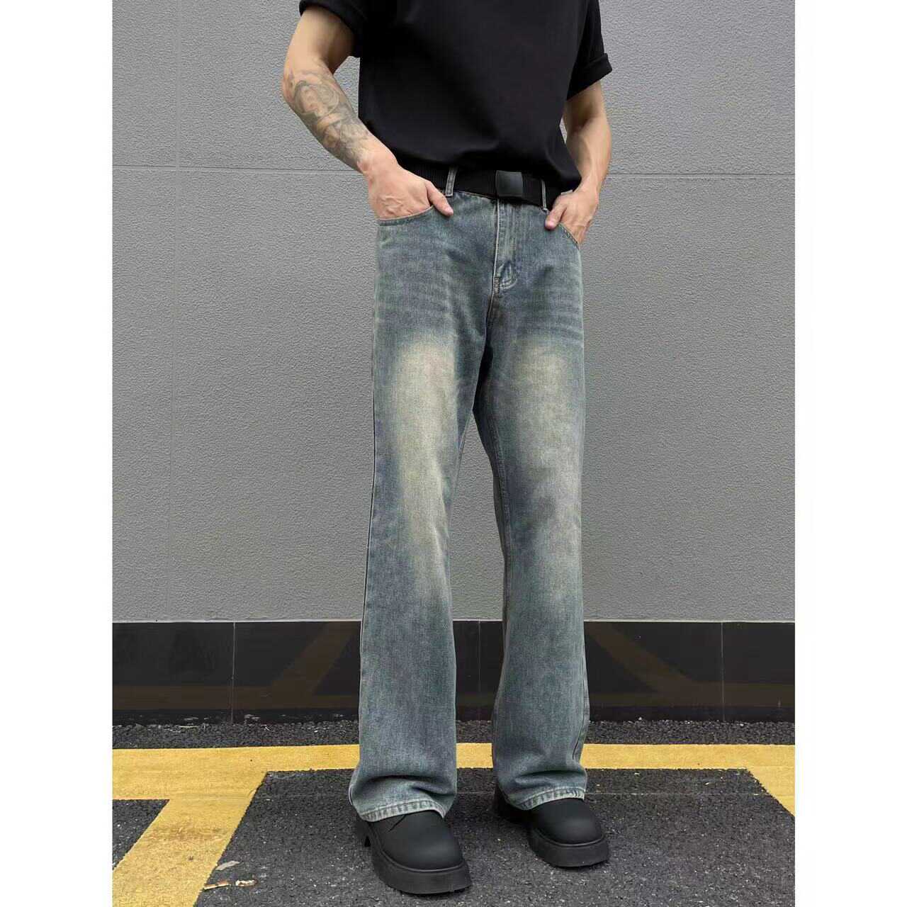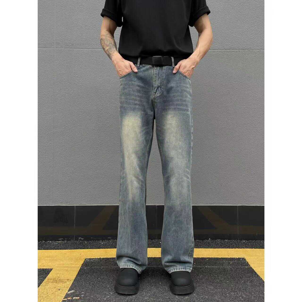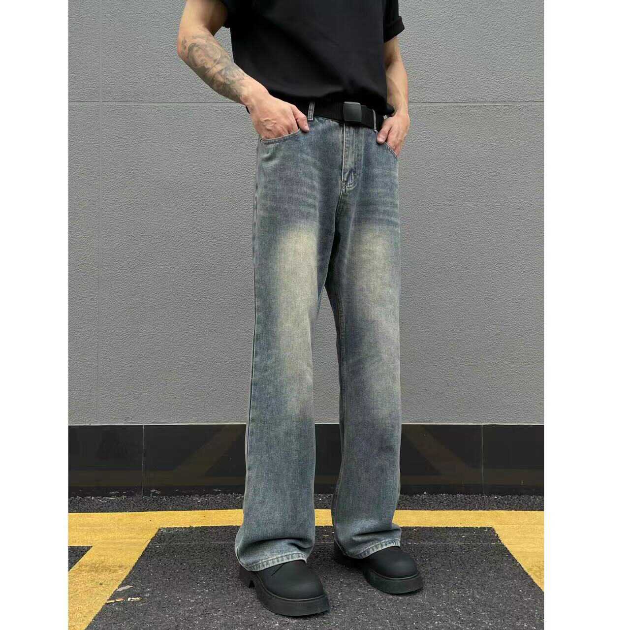 美式牛仔裤复古水洗做旧个性男潮流直筒微喇显瘦cleanfit时尚裤子