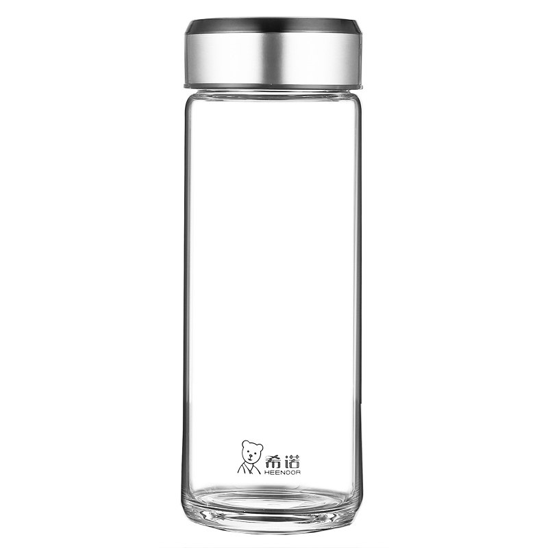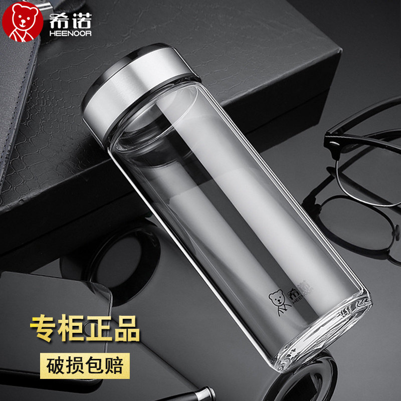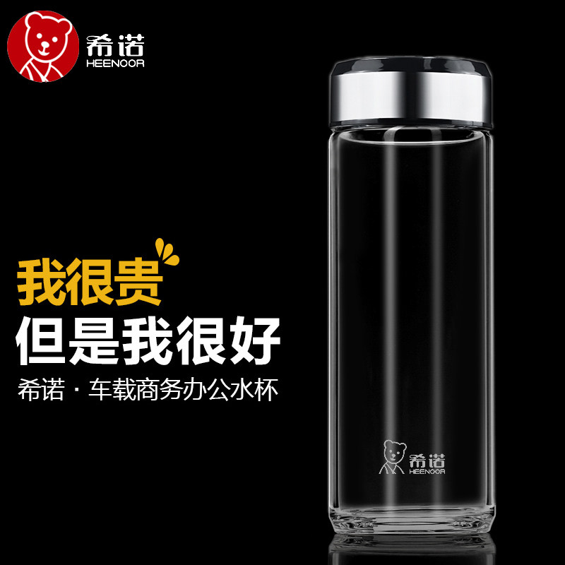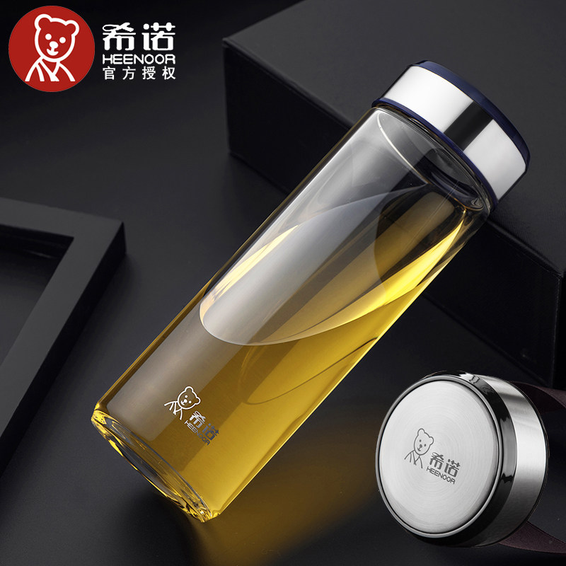 希诺玻璃杯单层加厚水杯商务便携高档泡茶杯子带盖透明茶杯可印字