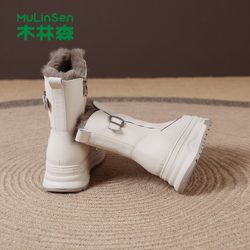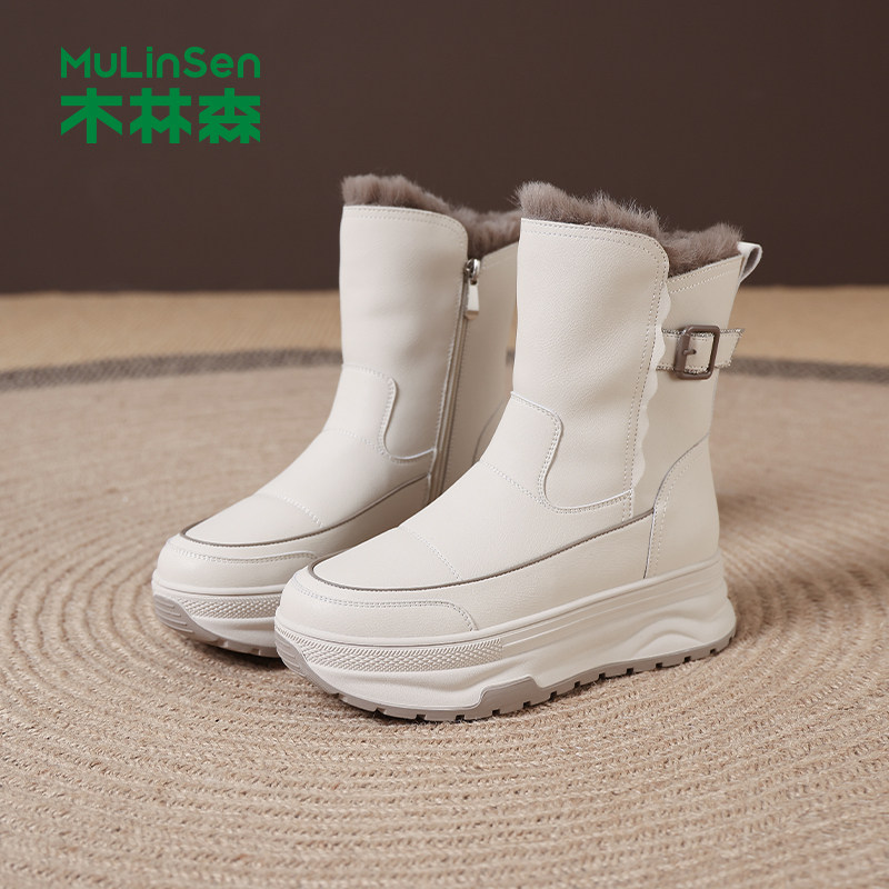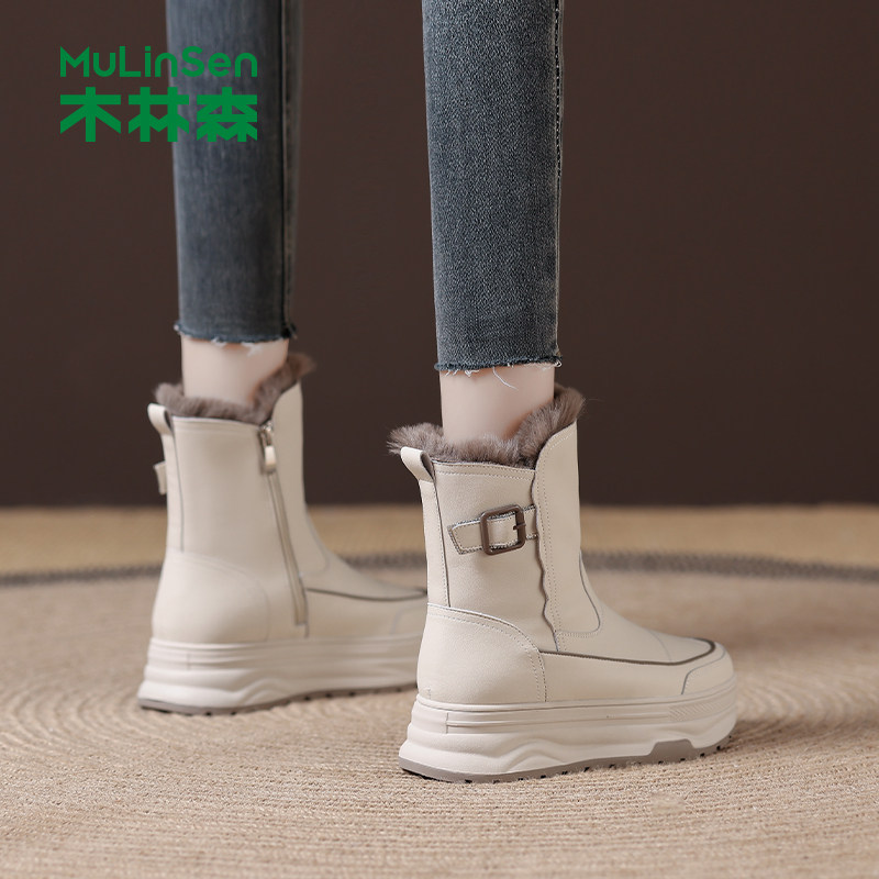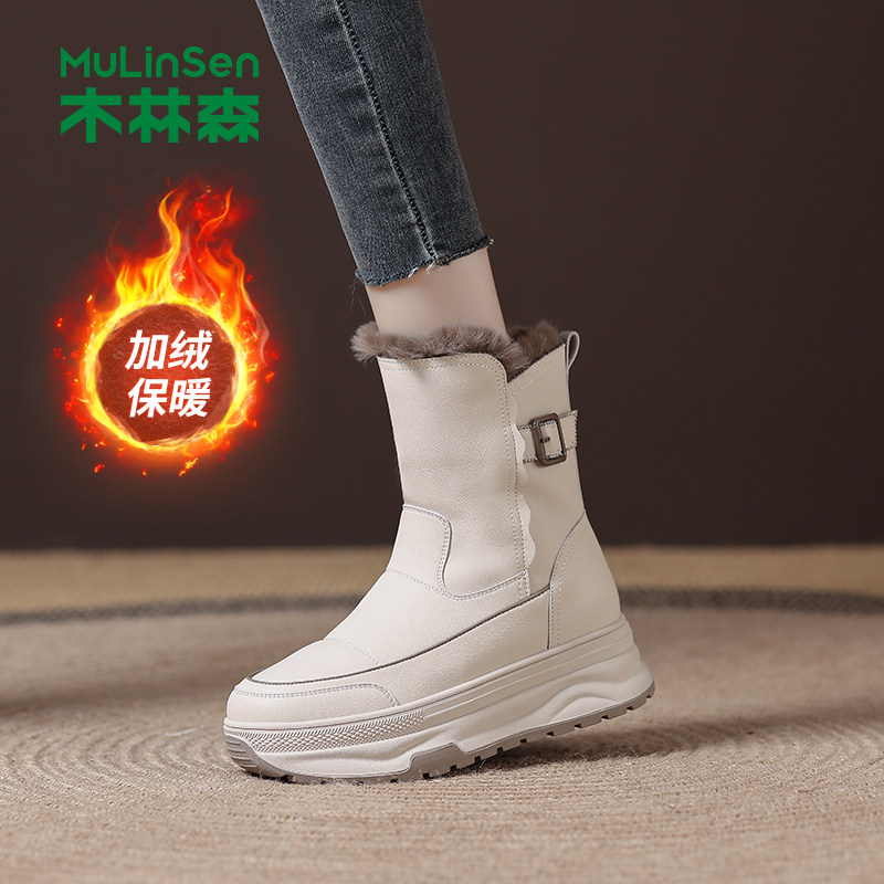 木林森雪地靴女2025冬季新款加绒加厚保暖棉鞋厚底增高防滑马丁靴