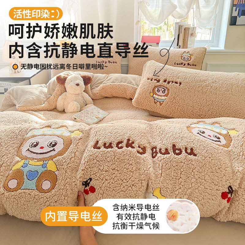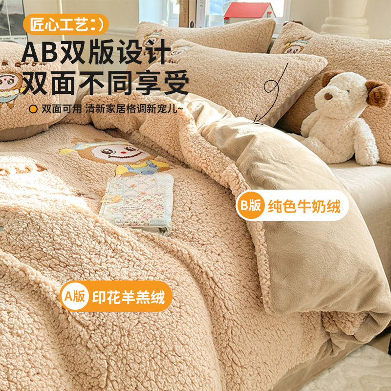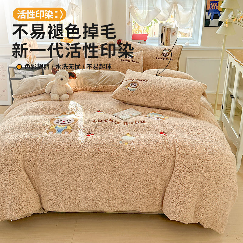 ABS加厚毛巾绣羊羔绒四件套2025新款冬季牛奶绒珊瑚绒宿舍三件套