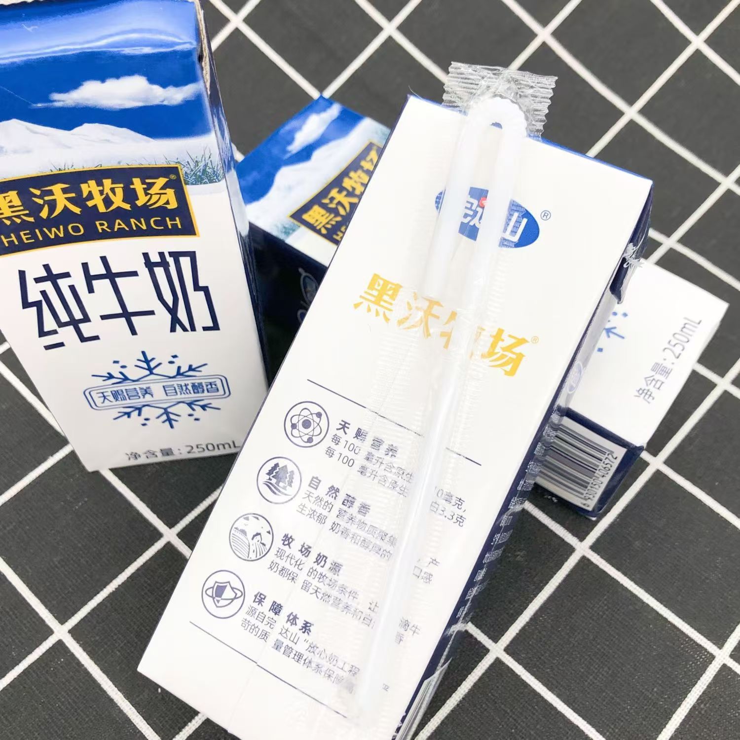 新日期完达山黑沃牧场纯牛奶250ml*12盒装学生奶青少年中老年