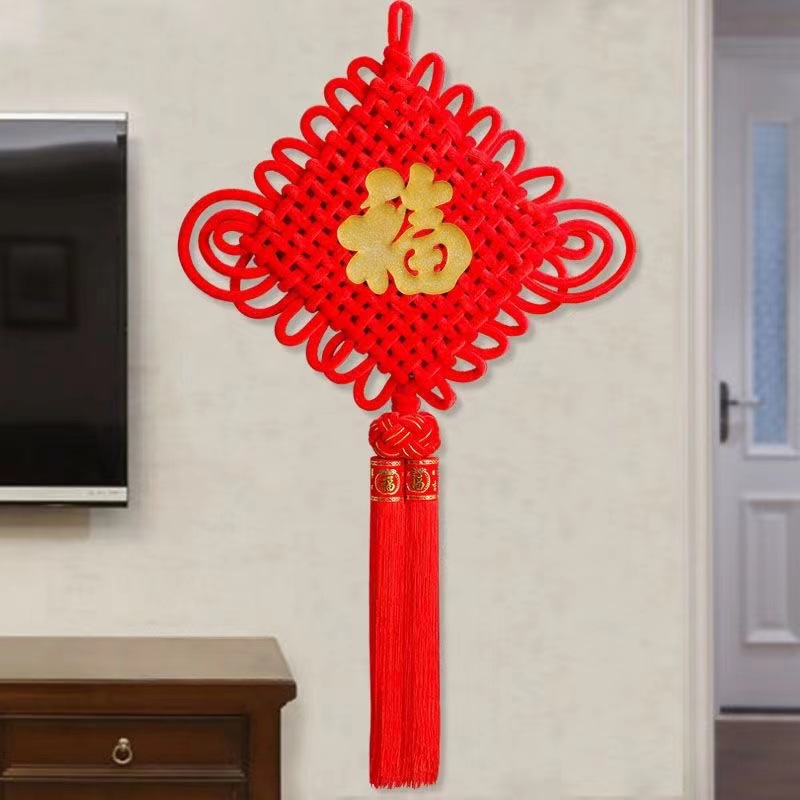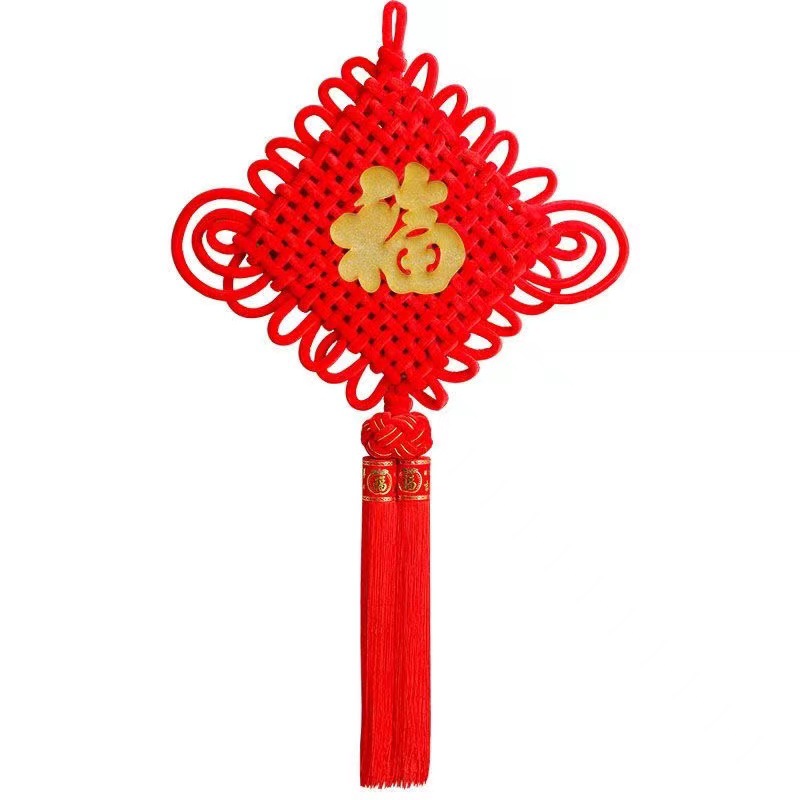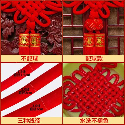 福字带球绒布中国结挂饰 春节大号平安结新年货挂饰新房玄关挂件