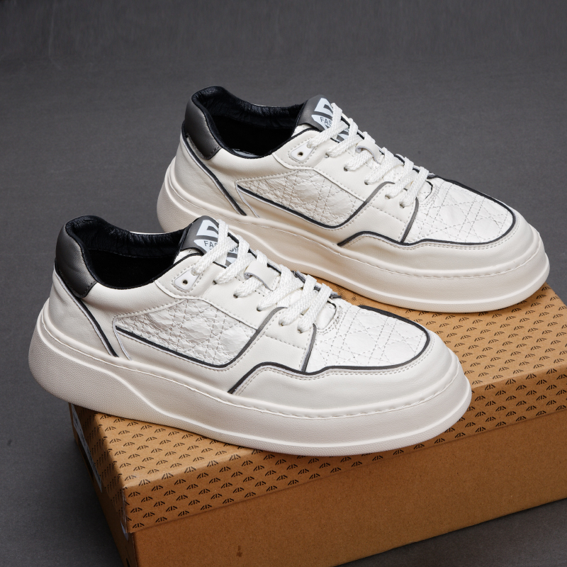 小白鞋男款2025新款秋季透气高级感休闲皮鞋春秋百搭真皮运动板鞋