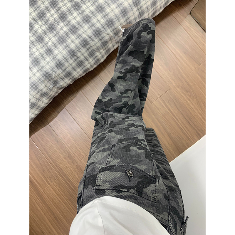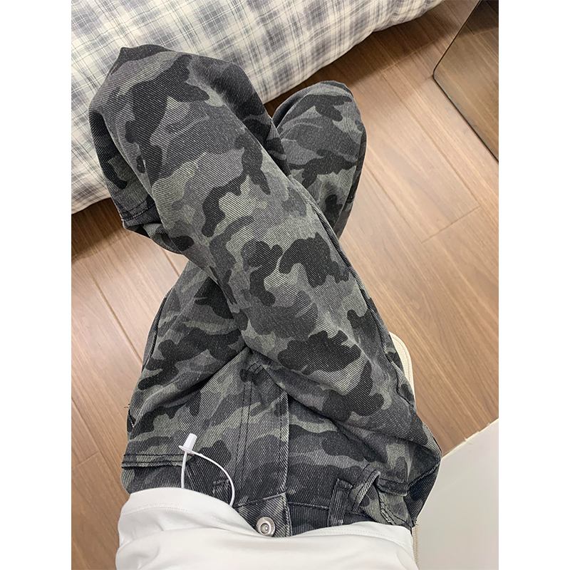 2025新款美式迷彩高腰复古工装拖地百搭显瘦直筒新款牛仔裤宽松裤
