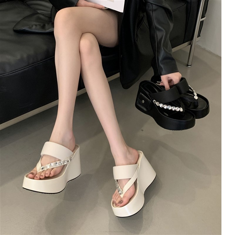 小个子增高海边度假夹趾人字拖水钻厚底夏季松糕坡跟沙滩女凉拖鞋