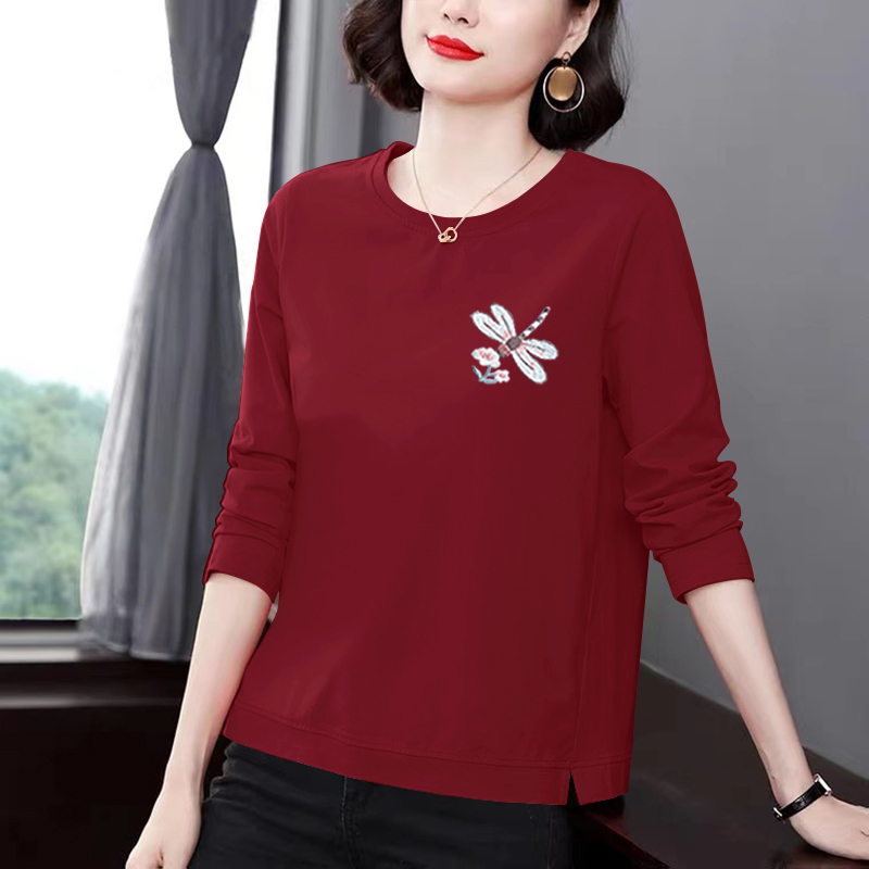 妈妈纯棉长袖t恤女大码宽松春秋季新款中老年女士打底衫上衣内搭