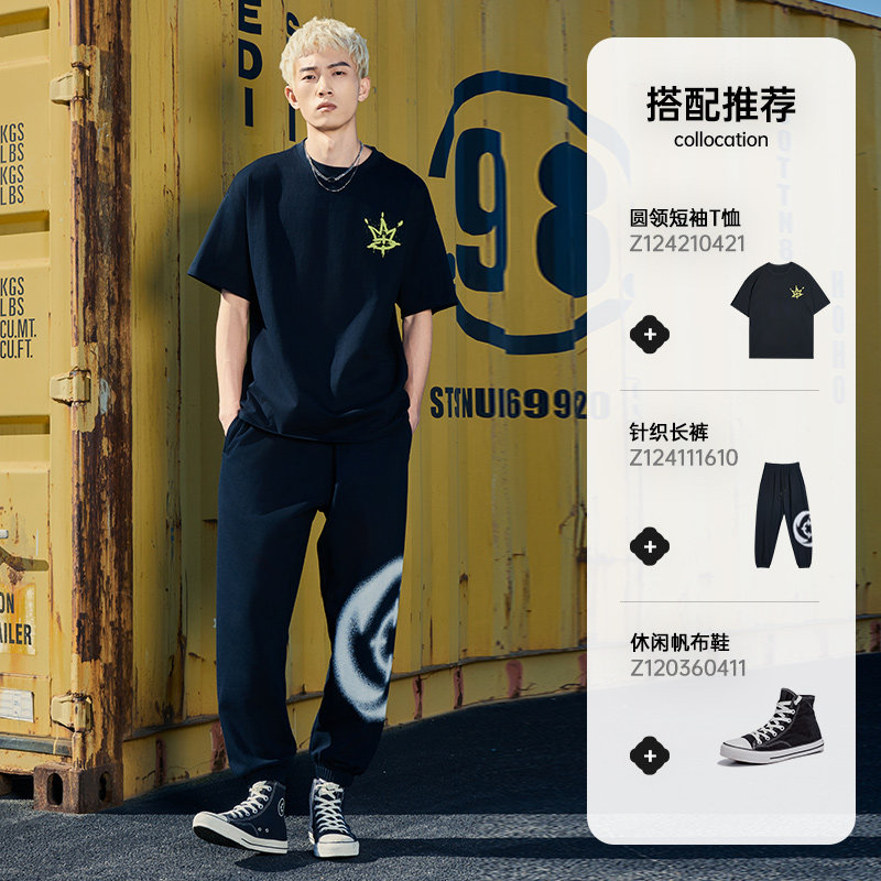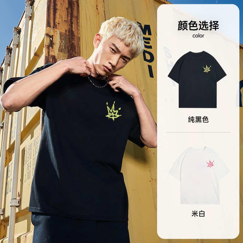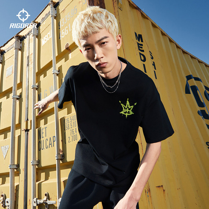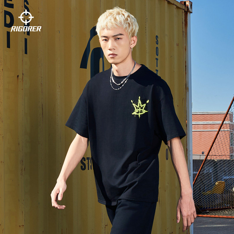准者纯棉短袖T恤男款运动上衣篮球跑步透气吸汗休闲宽松印花打底