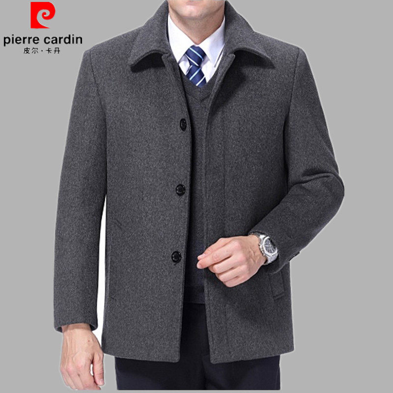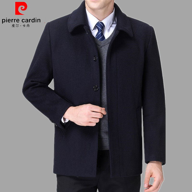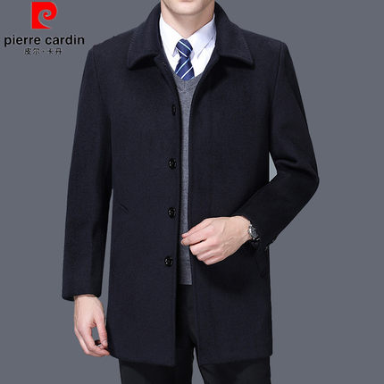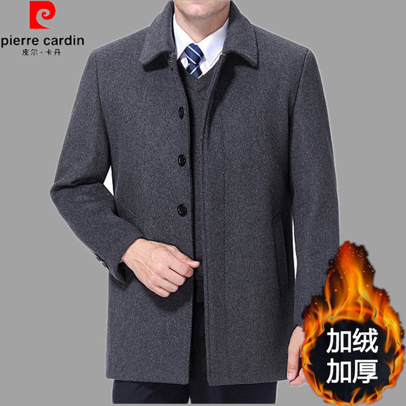 皮尔卡丹羊绒大衣中老年男士羊毛呢休闲夹克爸爸装加绒秋冬外套