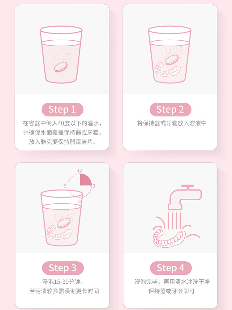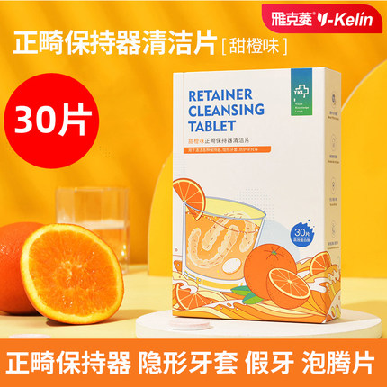 雅克菱正畸保持器清洁片30片甜橙味泡腾片洗假牙隐形牙套清洁神器