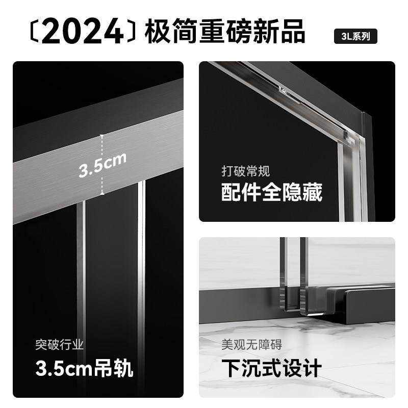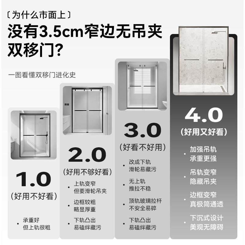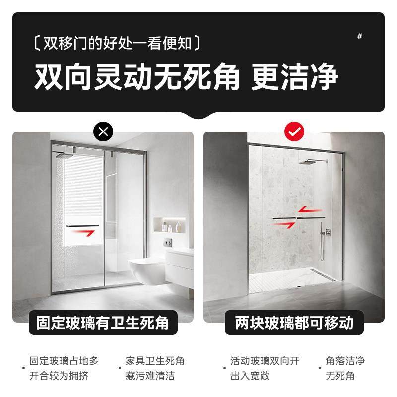 简艺无障碍下沉式极窄推拉双移门浴室干湿分离淋浴房玻璃门隔断