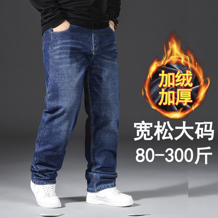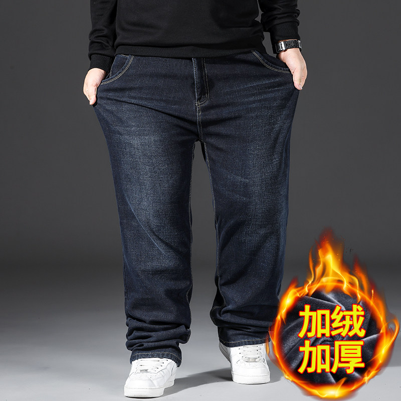 秋冬季加绒加厚牛仔裤男宽松直筒加肥加大码肥佬中年商务2025新款