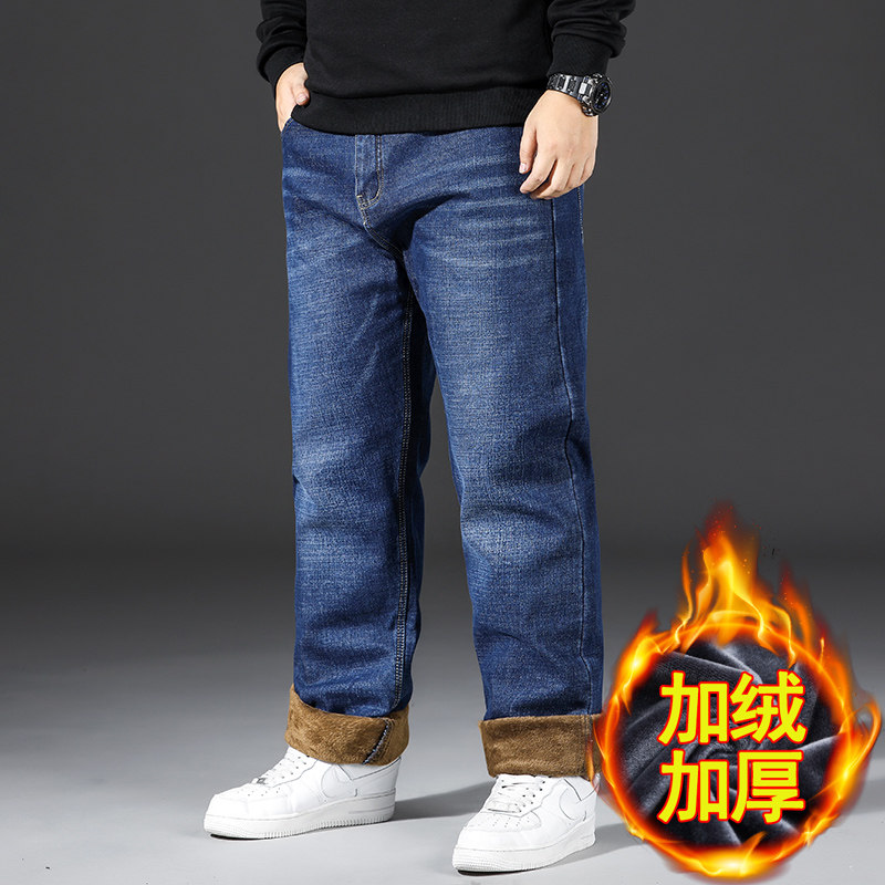 加绒加厚牛仔裤男宽松直筒