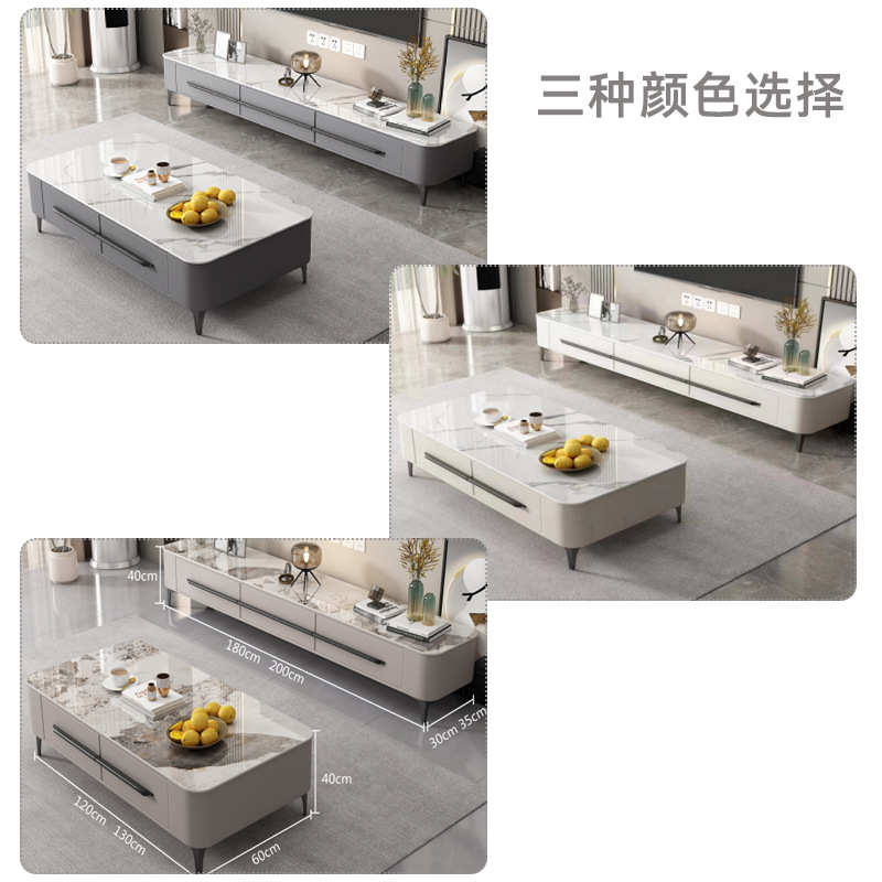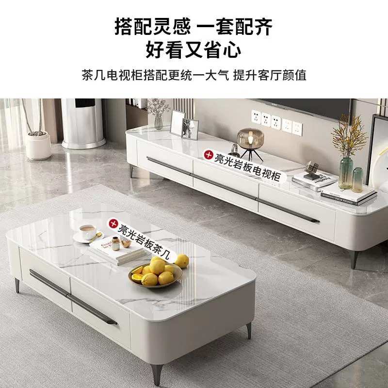 意式极简客厅方形高脚岩板茶几简约现代小户型客厅岩板茶几电视柜