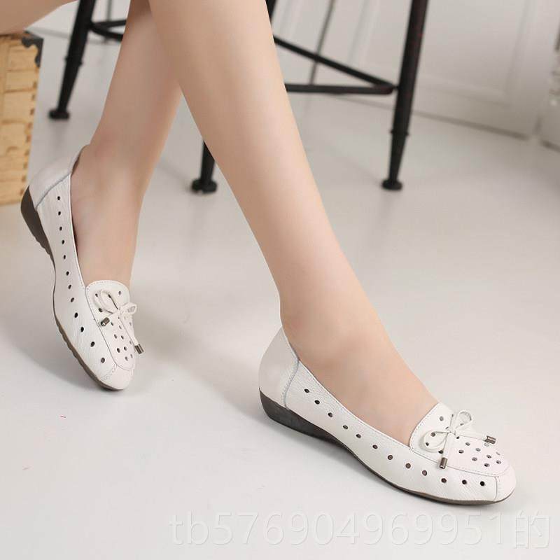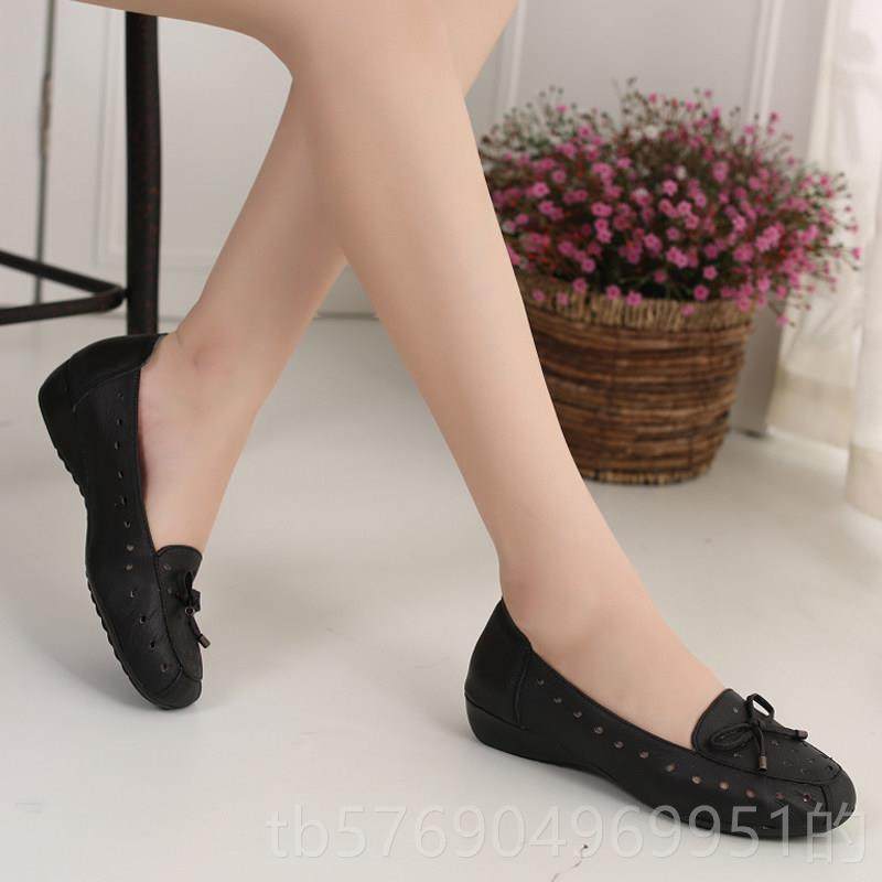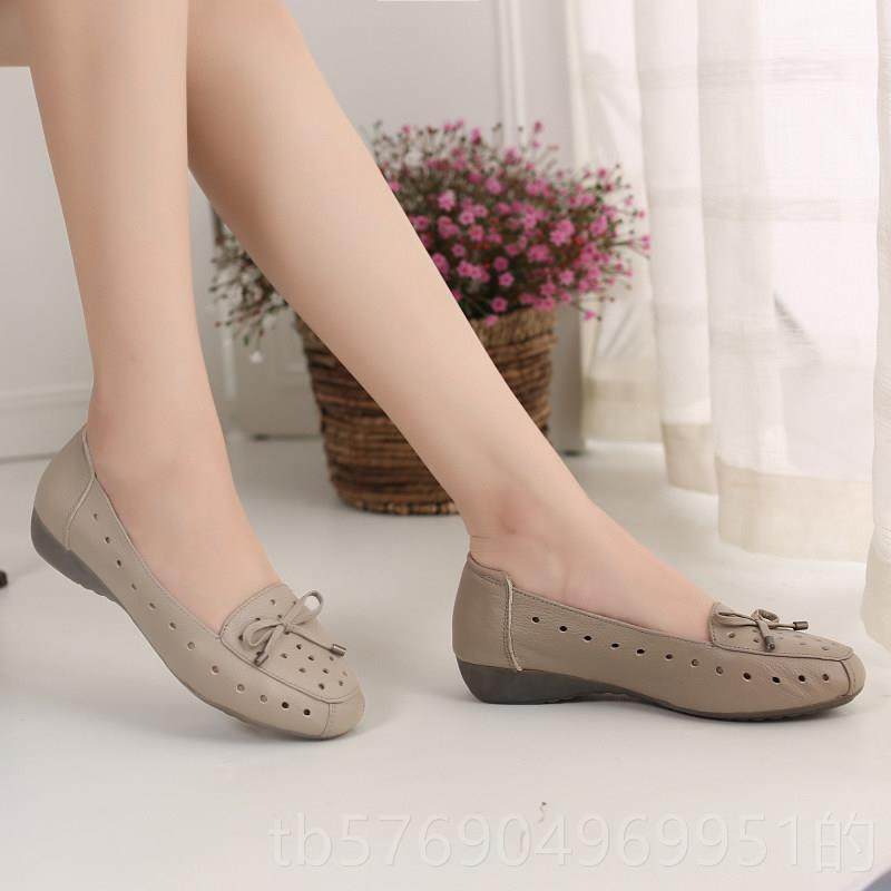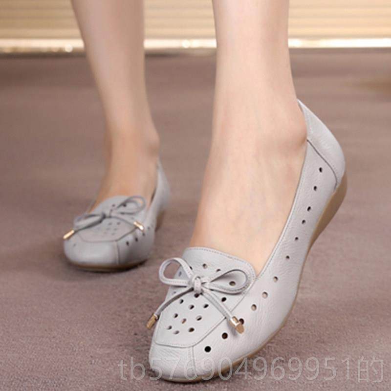 新款夏洞季休闲妈妈凉鞋女真镂皮软底空洞鞋平底舒适中老年透气皮