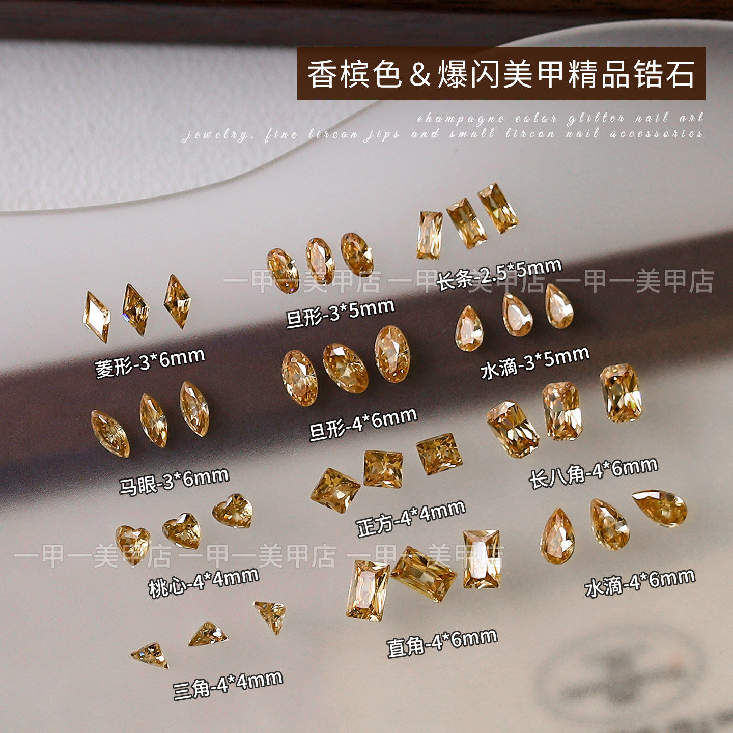 5A香槟色尖底锆石美甲钻网红咖色美拉德水滴马眼鸽子蛋异形钻饰品