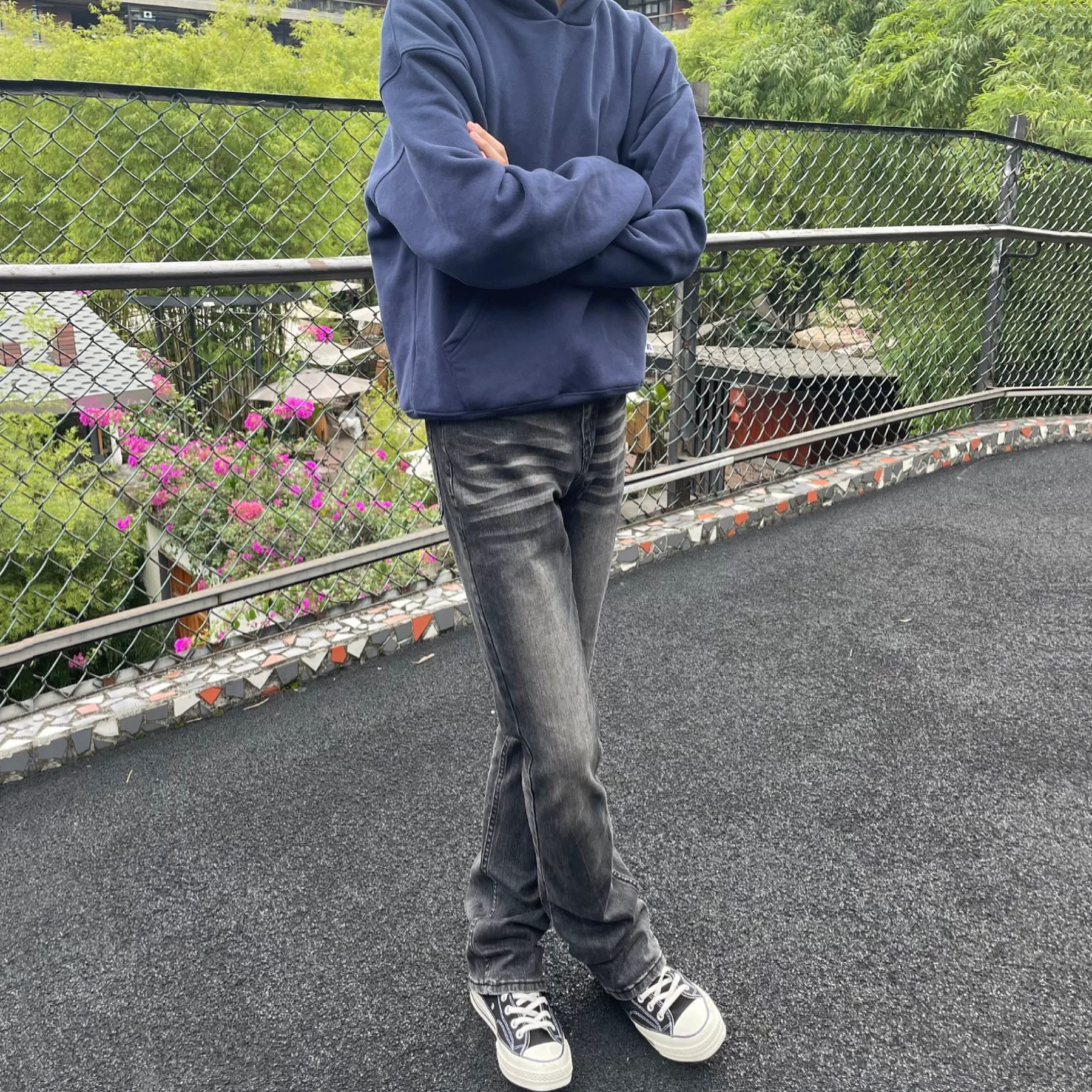 cleanfit百搭神裤重磅水洗黑灰微喇517显高修身男女款牛仔裤