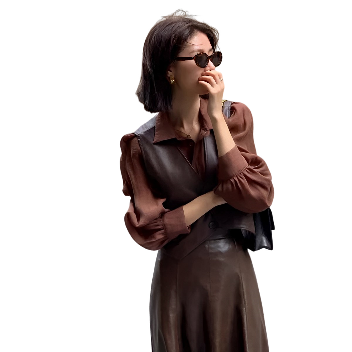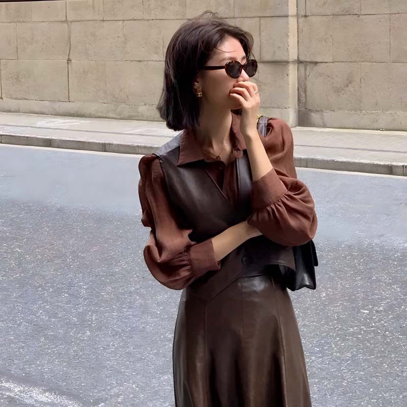 超好看独特别致机车风马夹女早秋新款高级感气质pu皮衣马甲短外套