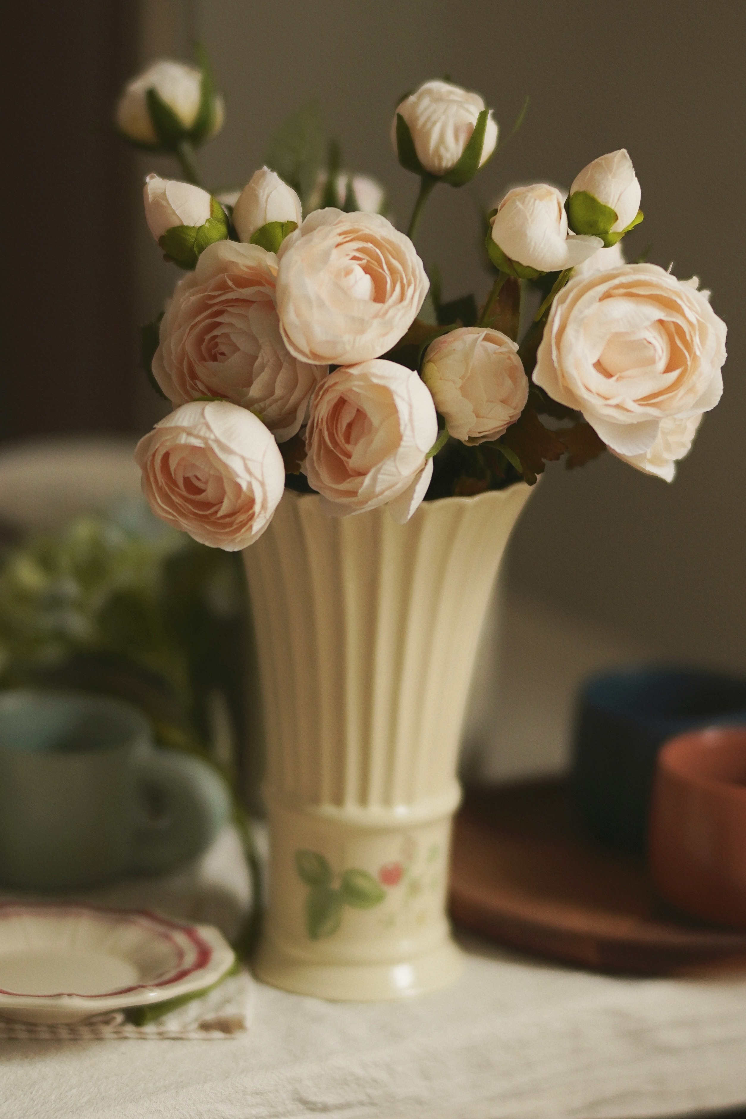 补货已到法式复古宫廷居家桌面摆件民宿陶瓷喇叭欧式古典直筒花瓶