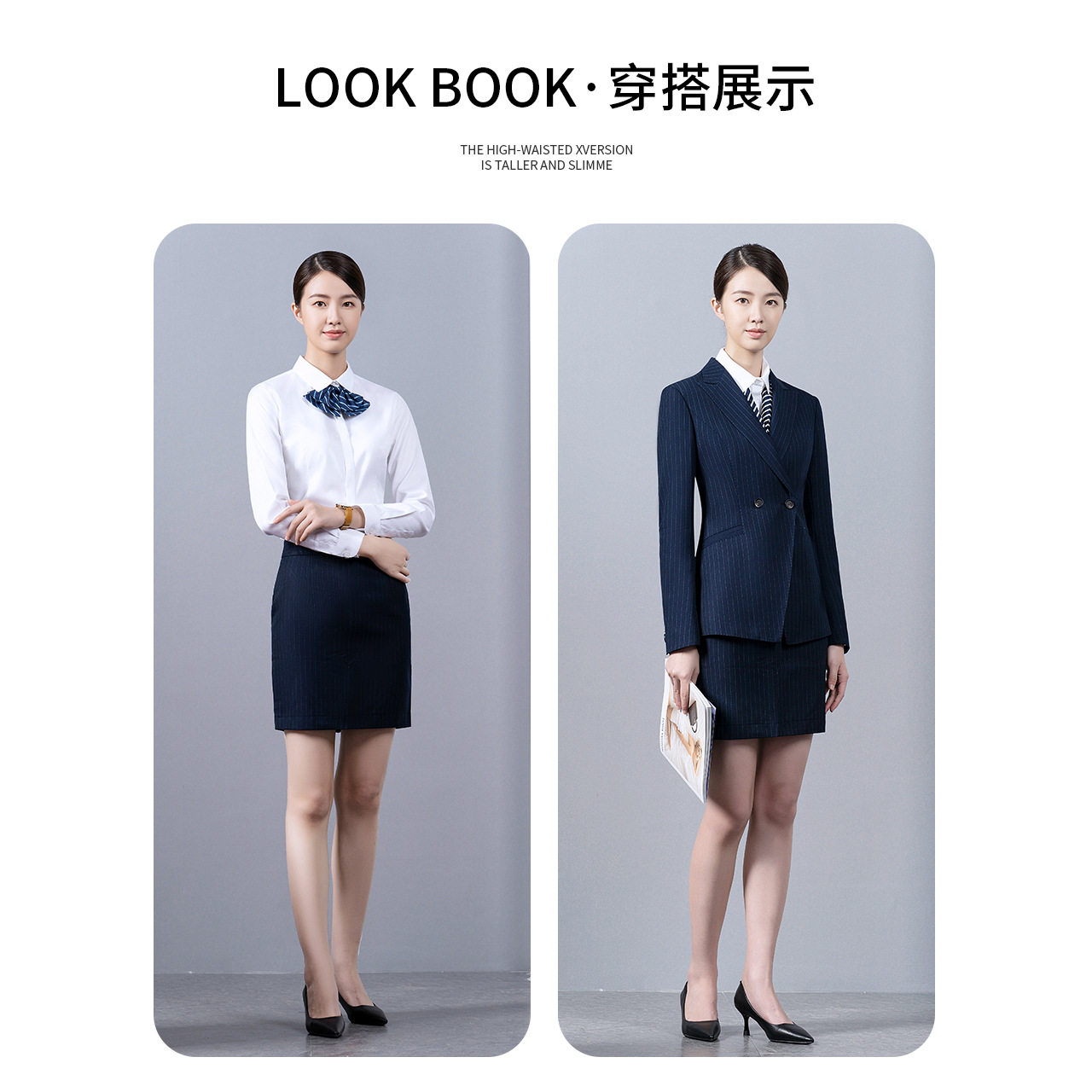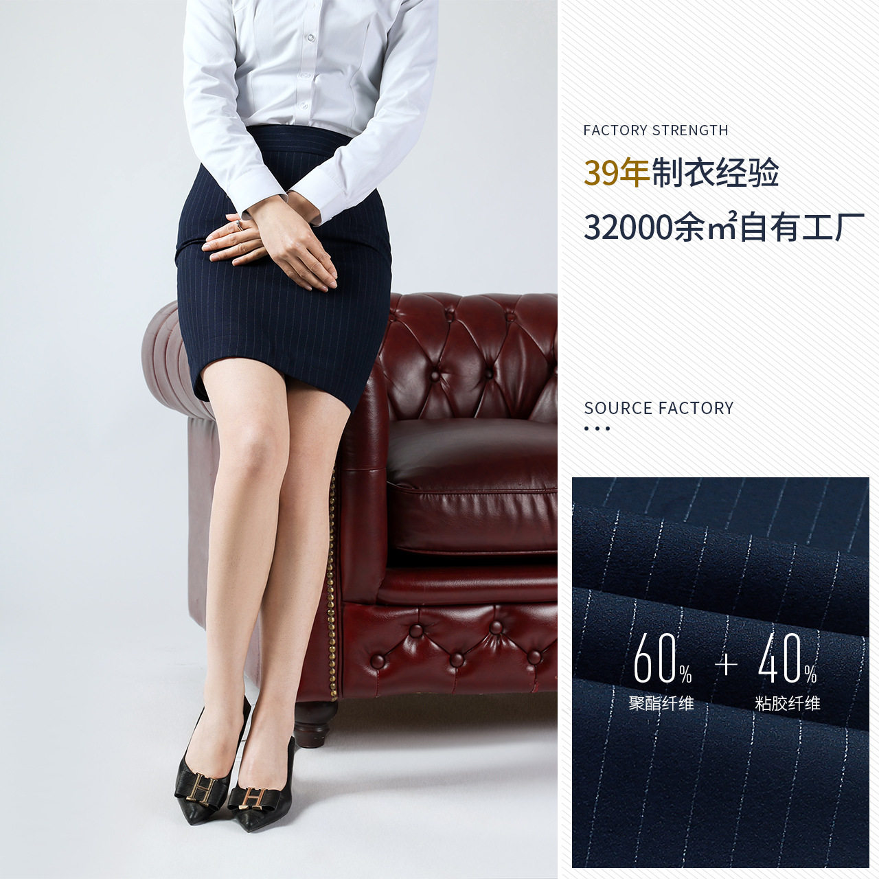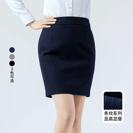 骆豪正品春夏女裙女西裙藏青色条纹裙短裙女士商务行政西装裙