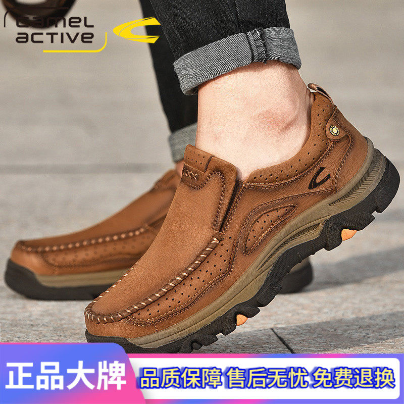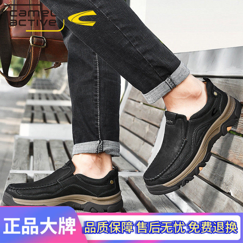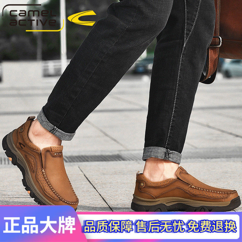 德国骆驼动感男鞋秋冬季真皮牛皮皮鞋软底一脚蹬休闲懒人鞋子耐磨