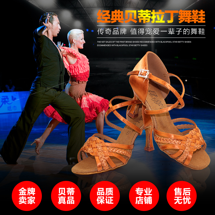 贝蒂女拉丁舞鞋2365缎面编织带拉丁舞鞋广场舞交谊舞鞋国标舞