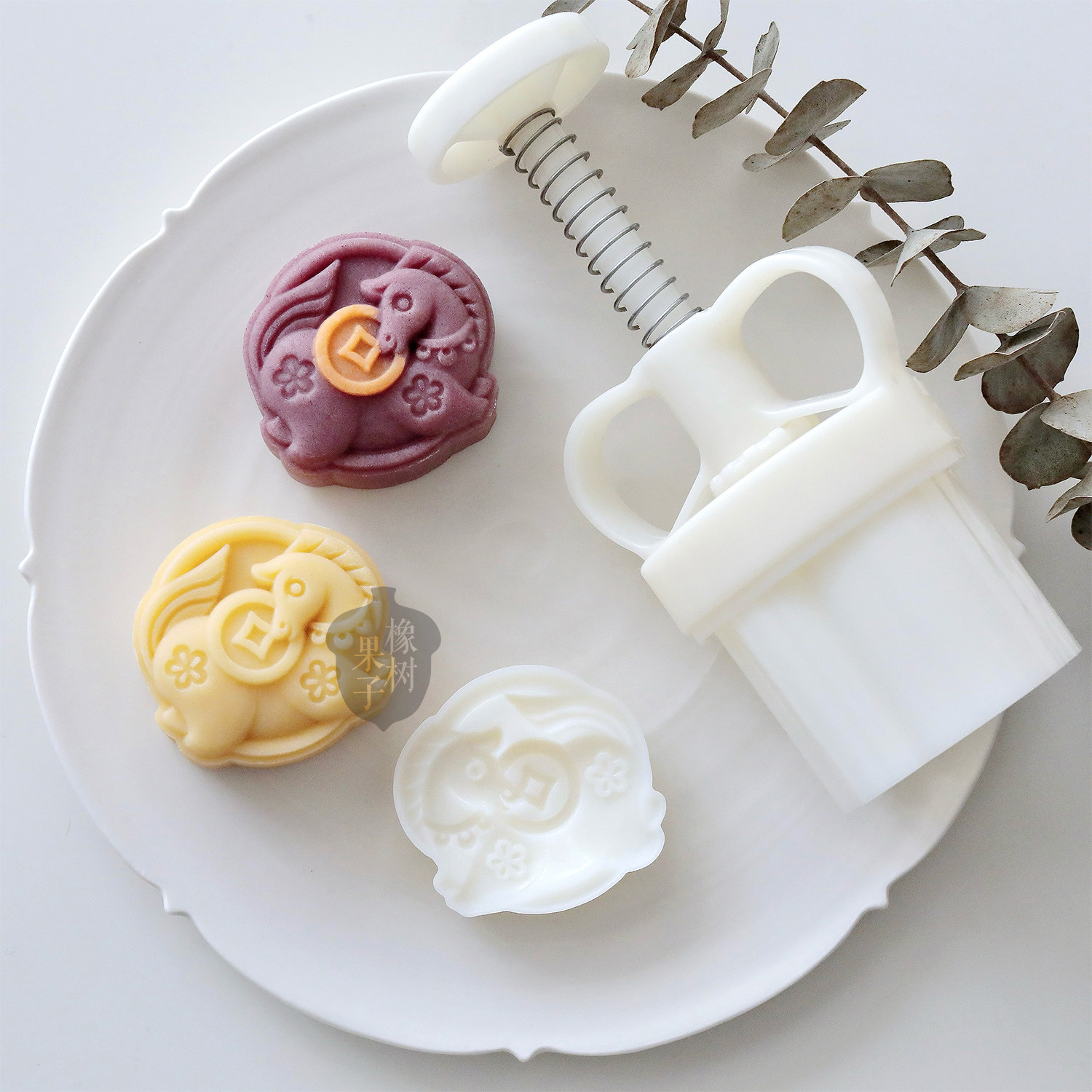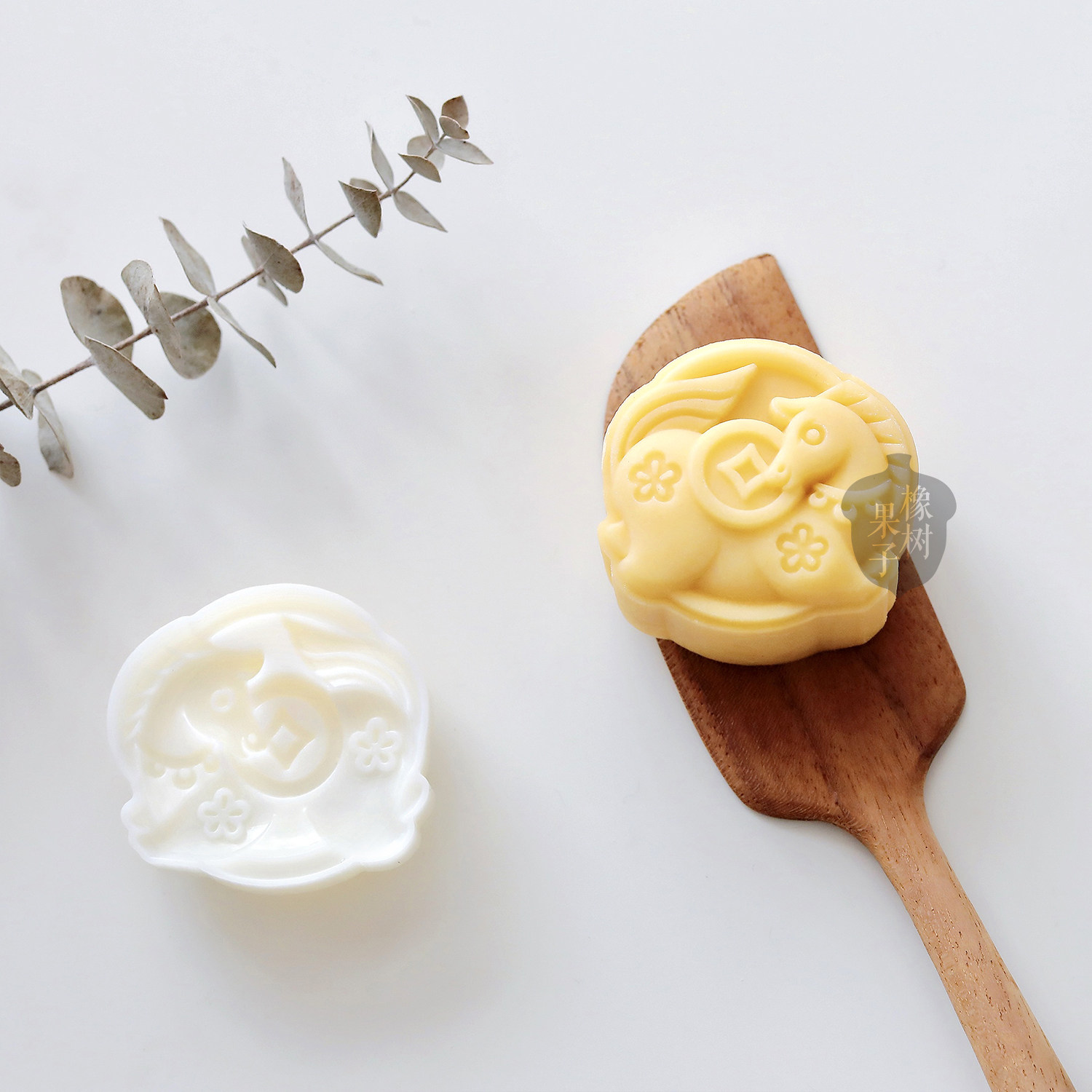50g马年招财开运酥糕点模 马上有钱中秋月饼模具小马立体曲奇压模