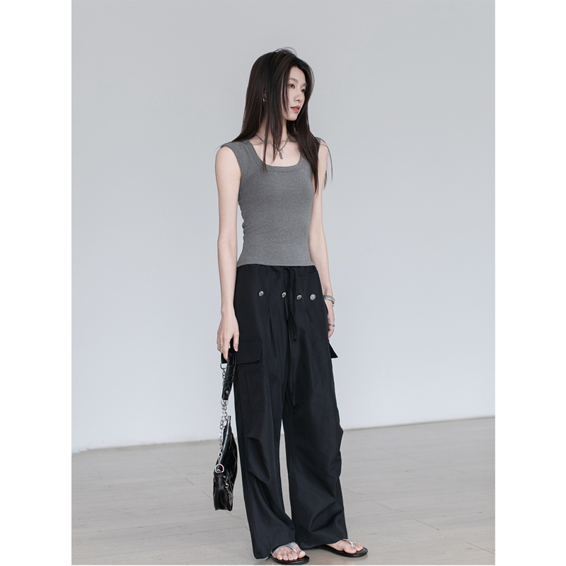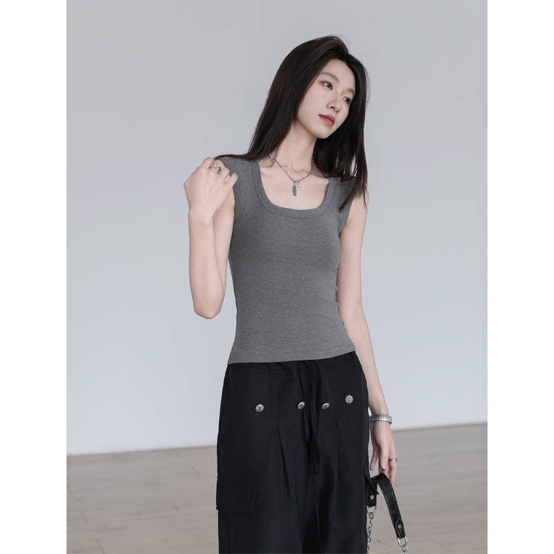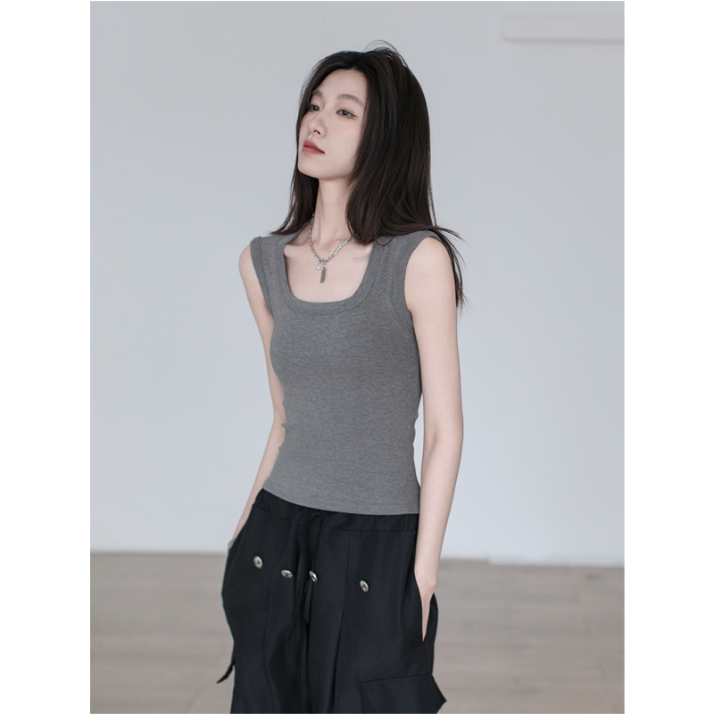 2025夏季新款U型领背心修身显瘦休闲百搭无袖吊带弹力女款上衣