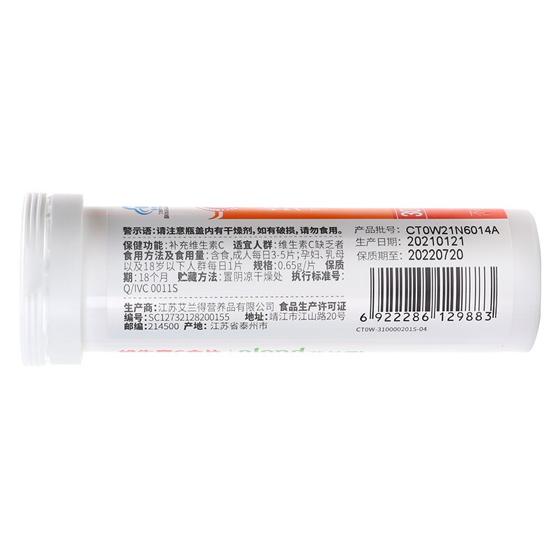 艾兰得维生素C含片可咀嚼60片橘子橙子味VC无糖成人儿童孕妇补维C