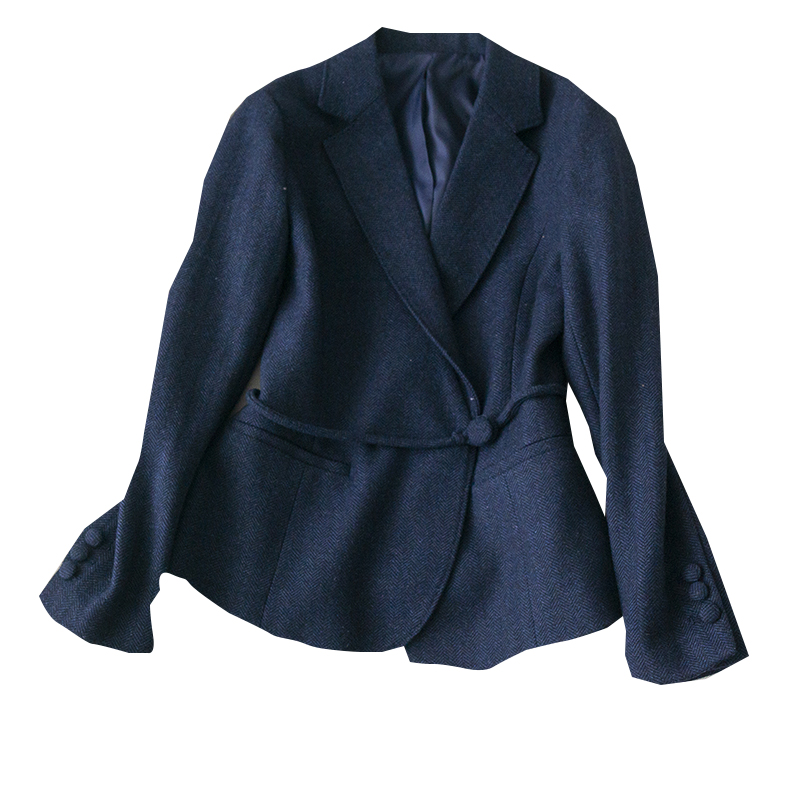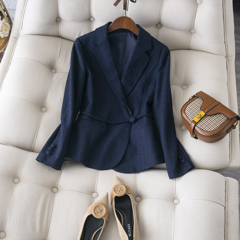 日系通勤风小个子毛呢西装春冬新品修身剪裁腰带羊毛西服外套女