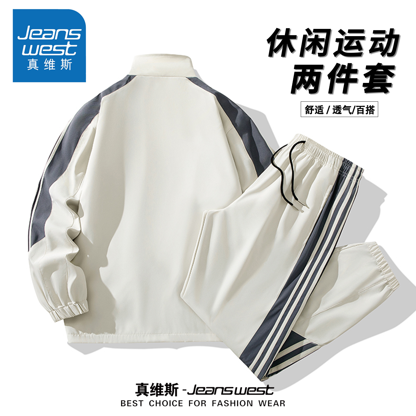 真维斯休闲运动套装外套男春秋季潮牌宽松百搭美式裤子搭配两件套