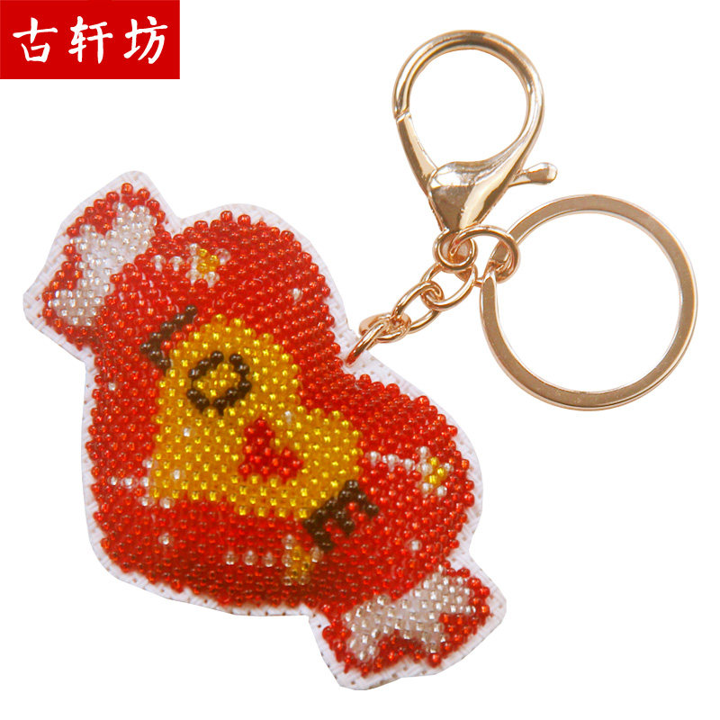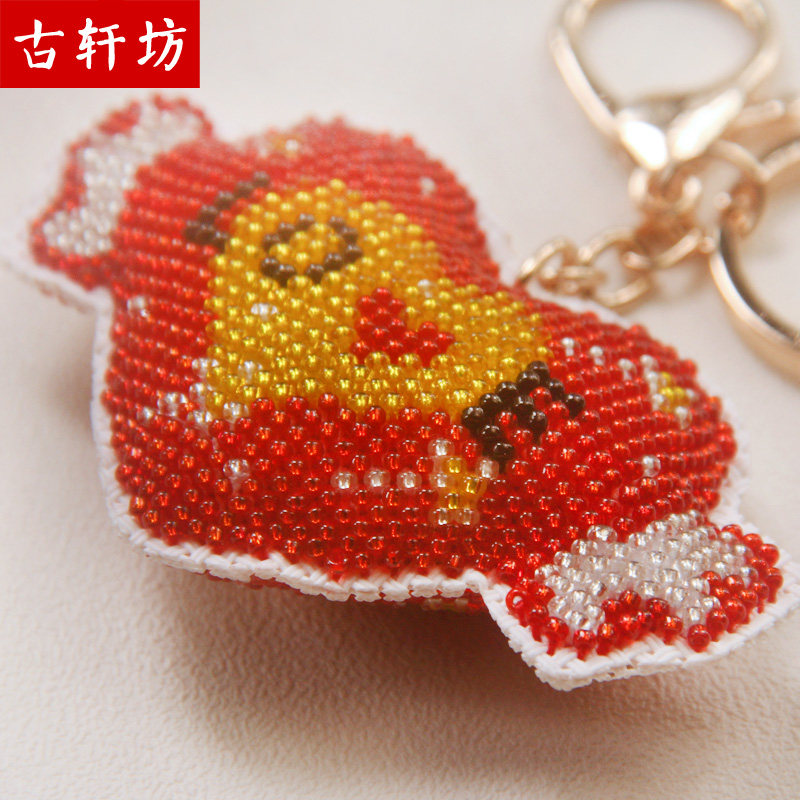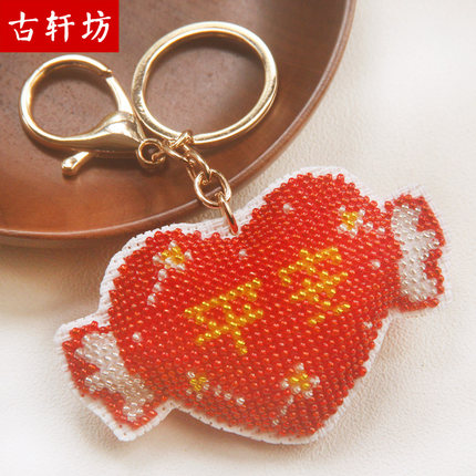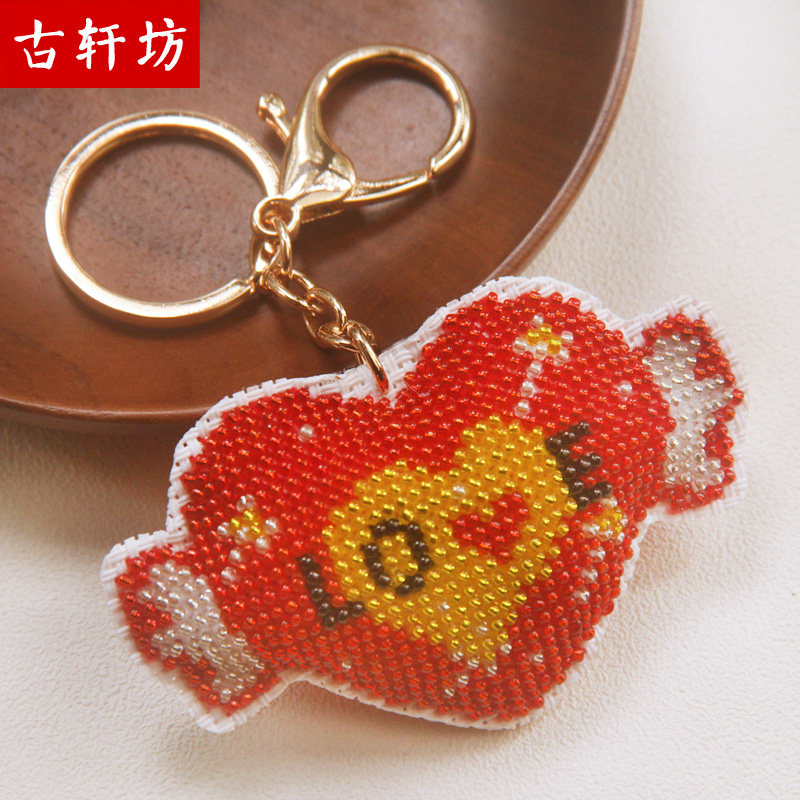 创意汽车钥匙扣挂件爱心纯手工十字绣成品珠绣love保平安情侣礼物