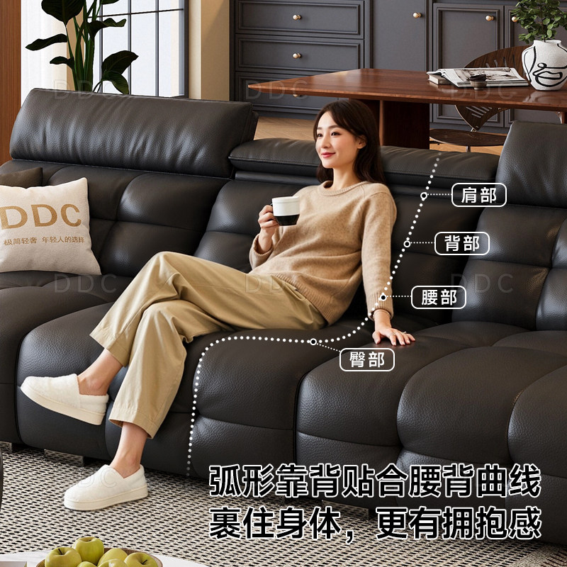 DDC意式复古可调节平推真皮沙发客厅电动多功能全青皮黑色沙发床